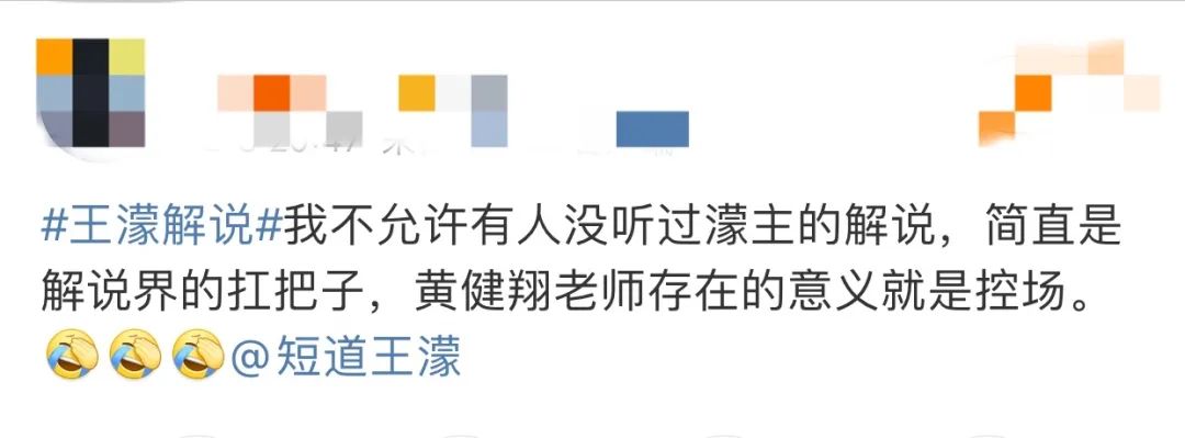 “我不允许有人没听过王濛的解说,简直是解说界的扛把子,黄健翔老师存在的意义就是控场。”