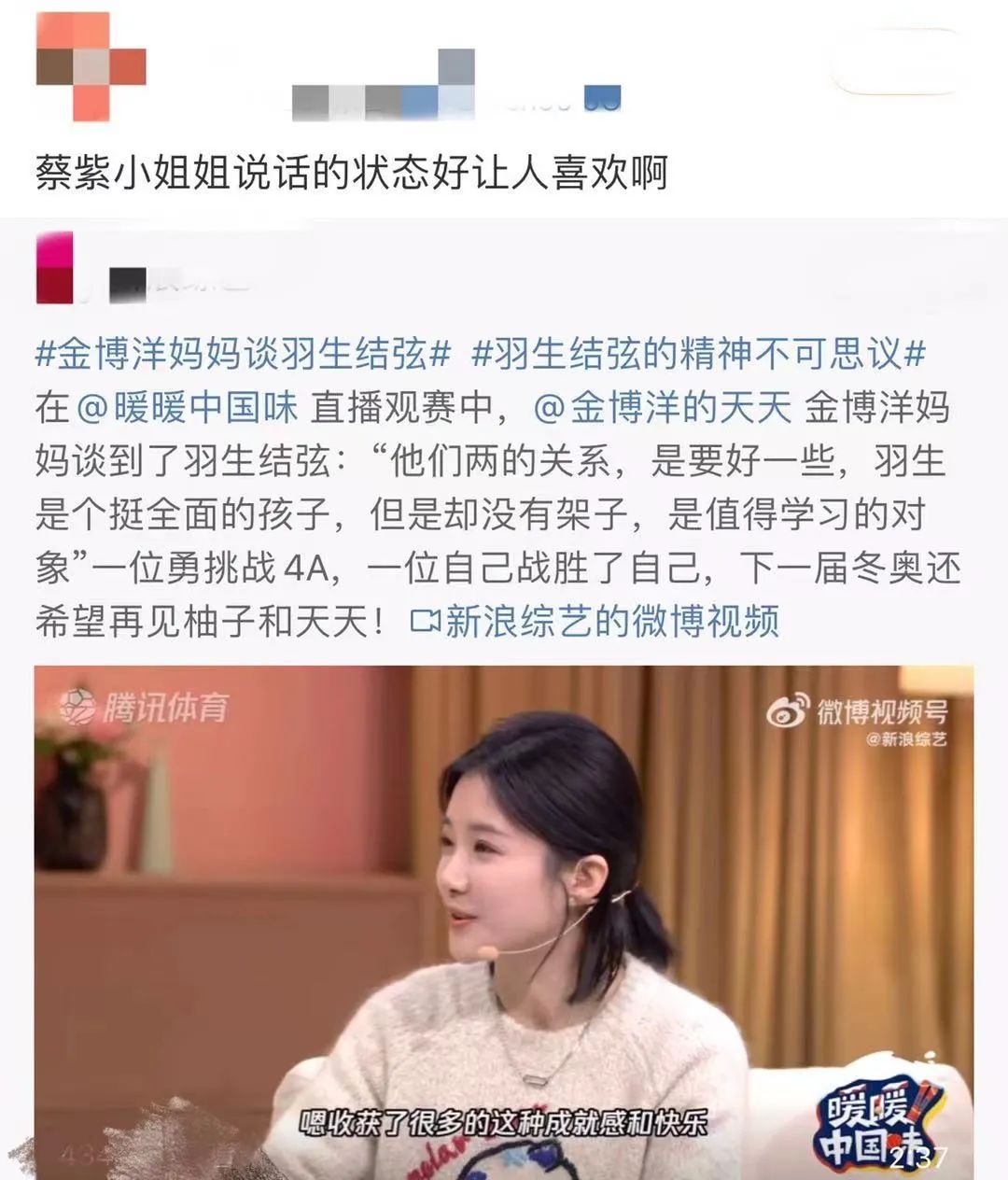 在谈到金博洋与羽生结弦的友谊时,蔡紫先说到金博洋