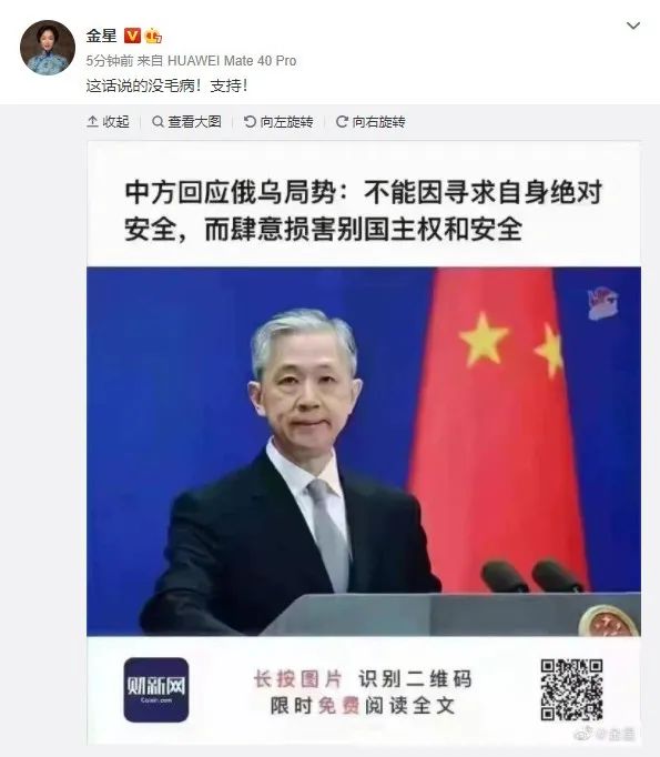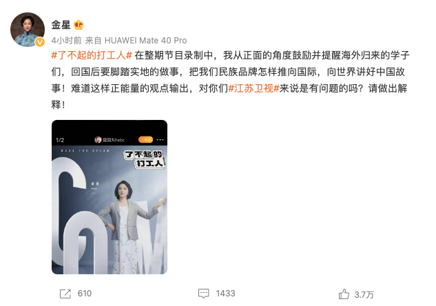 今日下午,金星发表了一篇微博,引起网友热议。