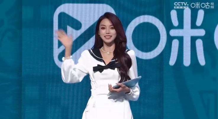 李莎旻子首次以簪花造型主持音乐盛典,主持中途突下大雨