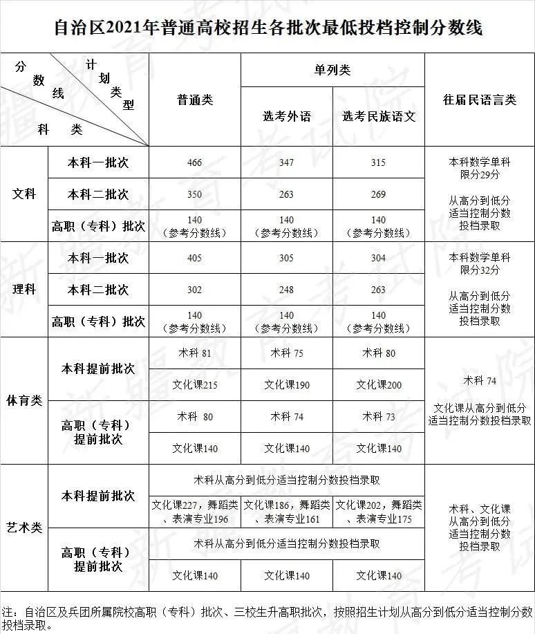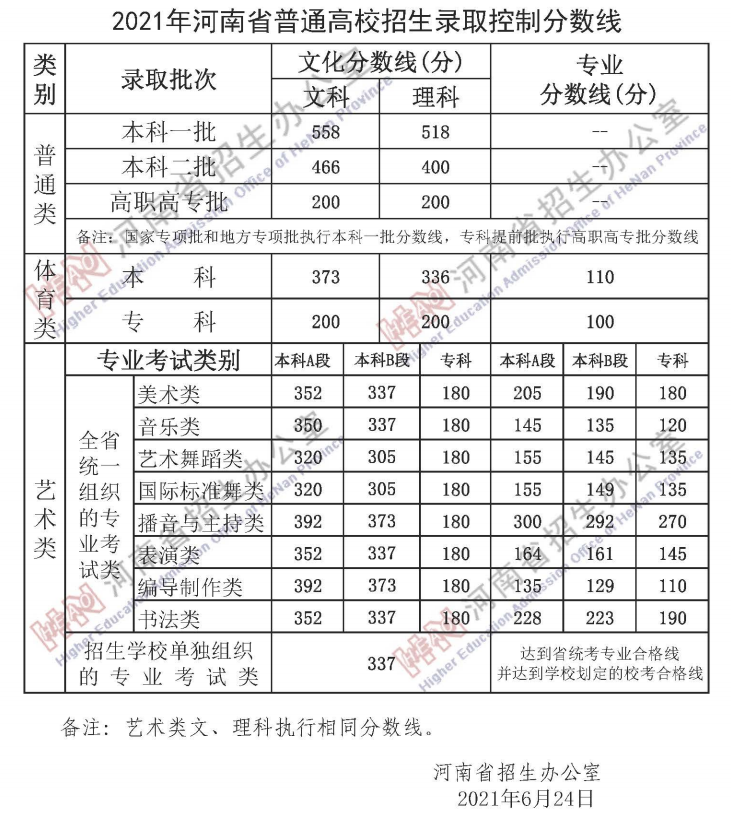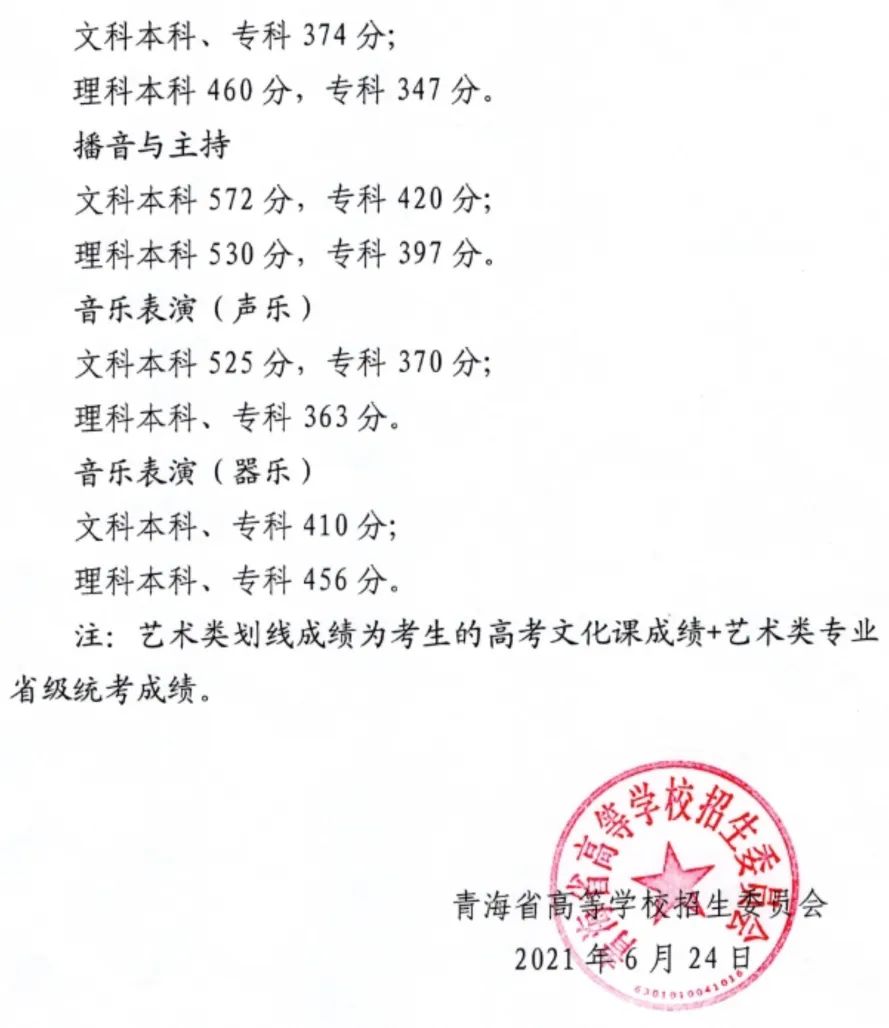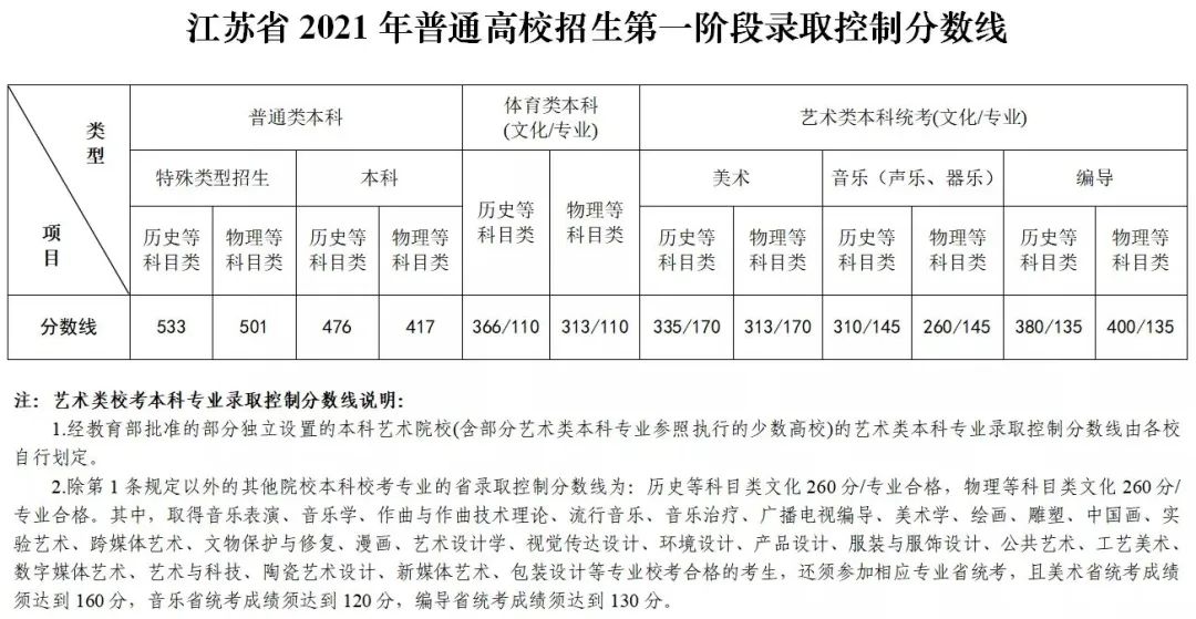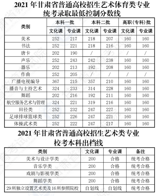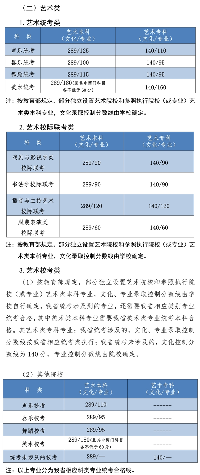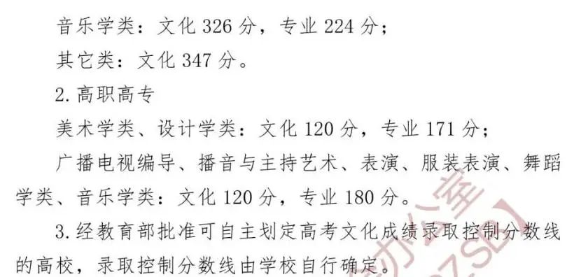 我省2021年普通高等学校艺术类专业招生文化成绩录取控制分数线已确定,现公布如下:
