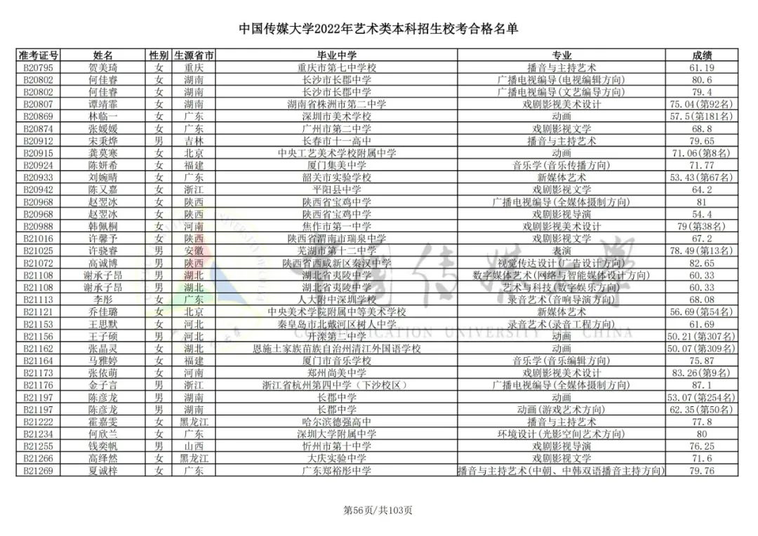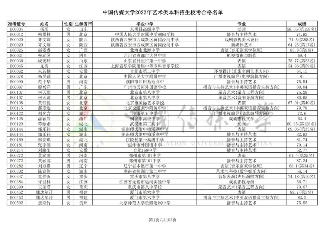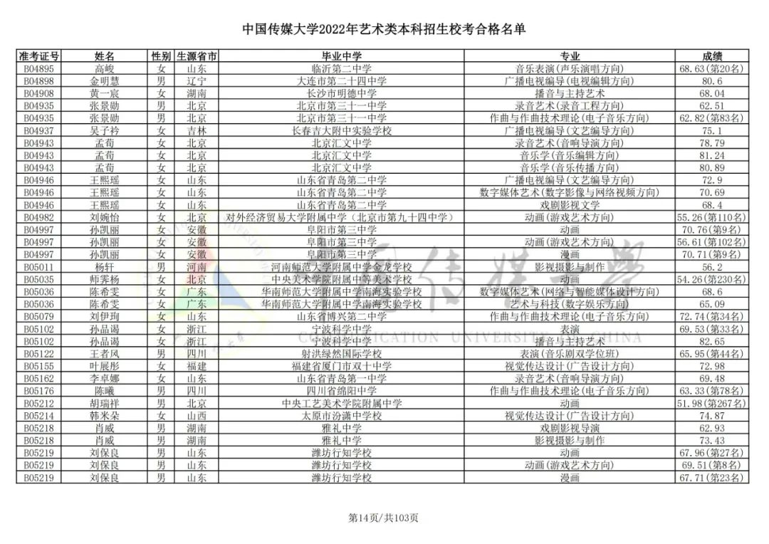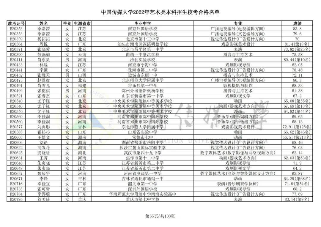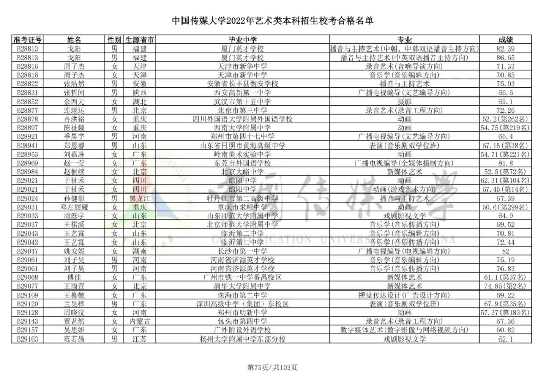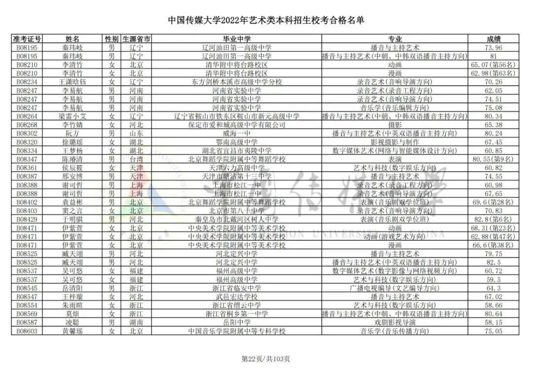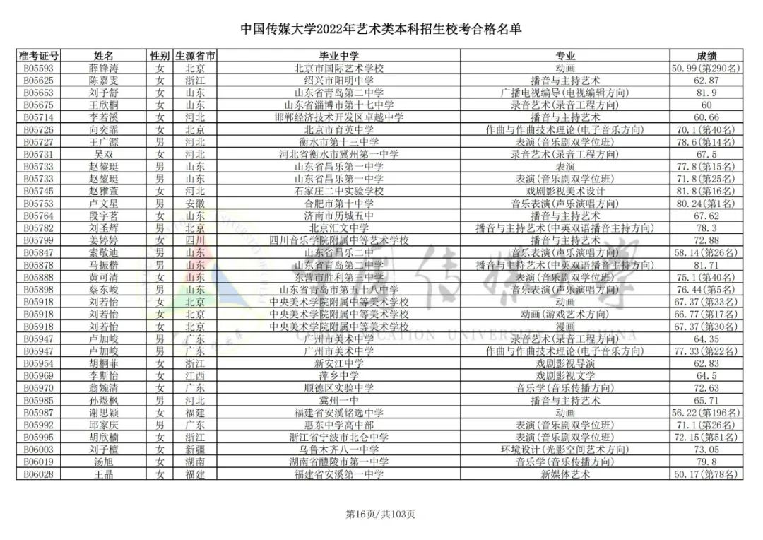 重磅!中国传媒大学2022艺术类本科招生校考合格名单公布!