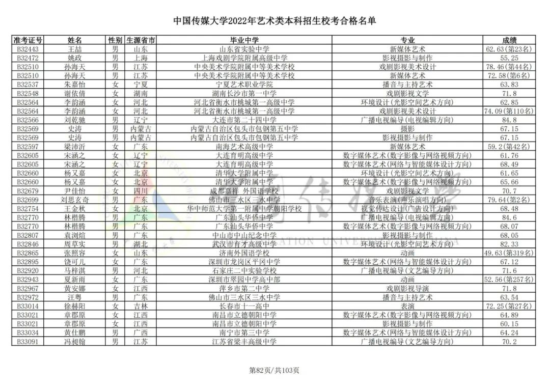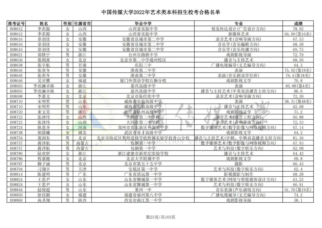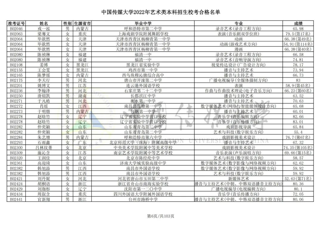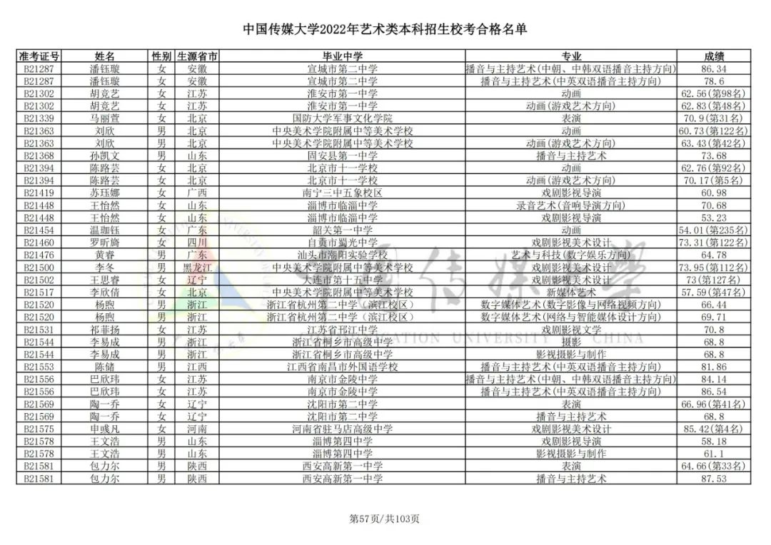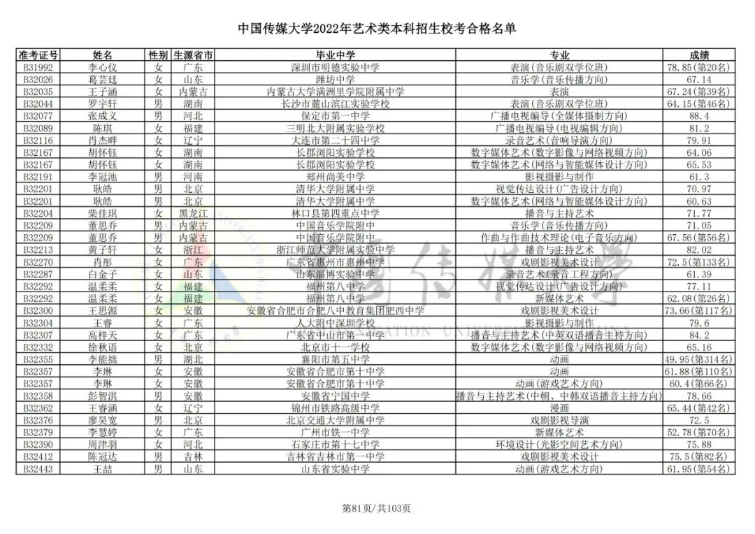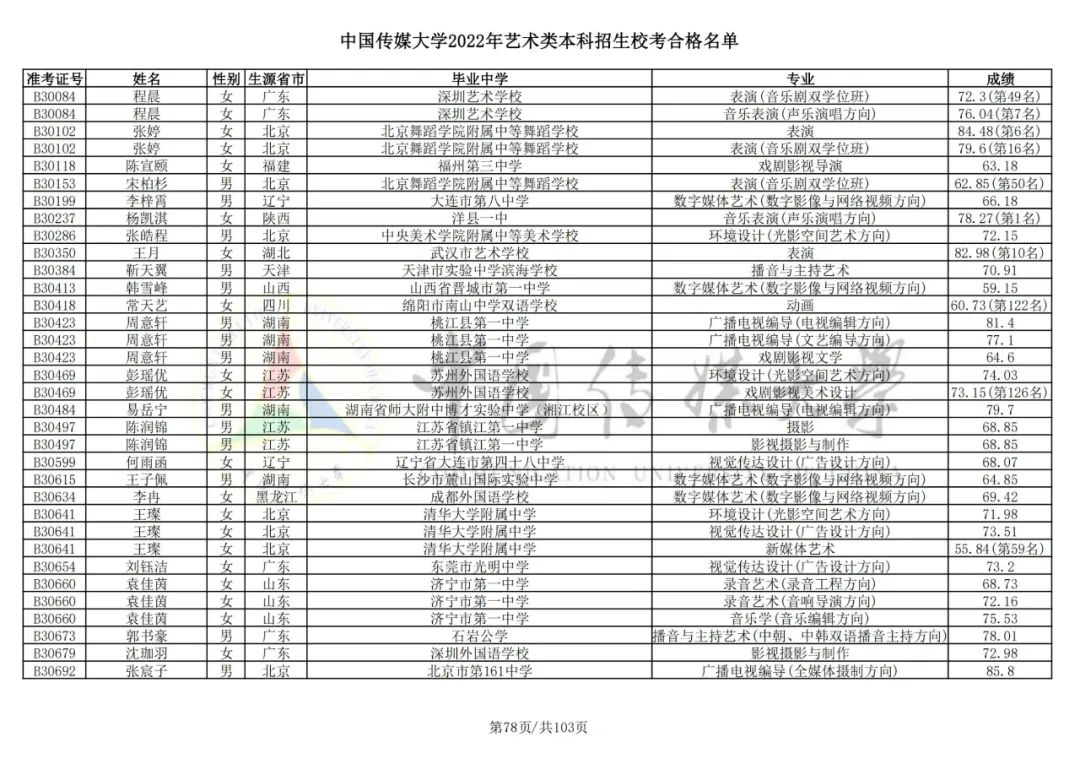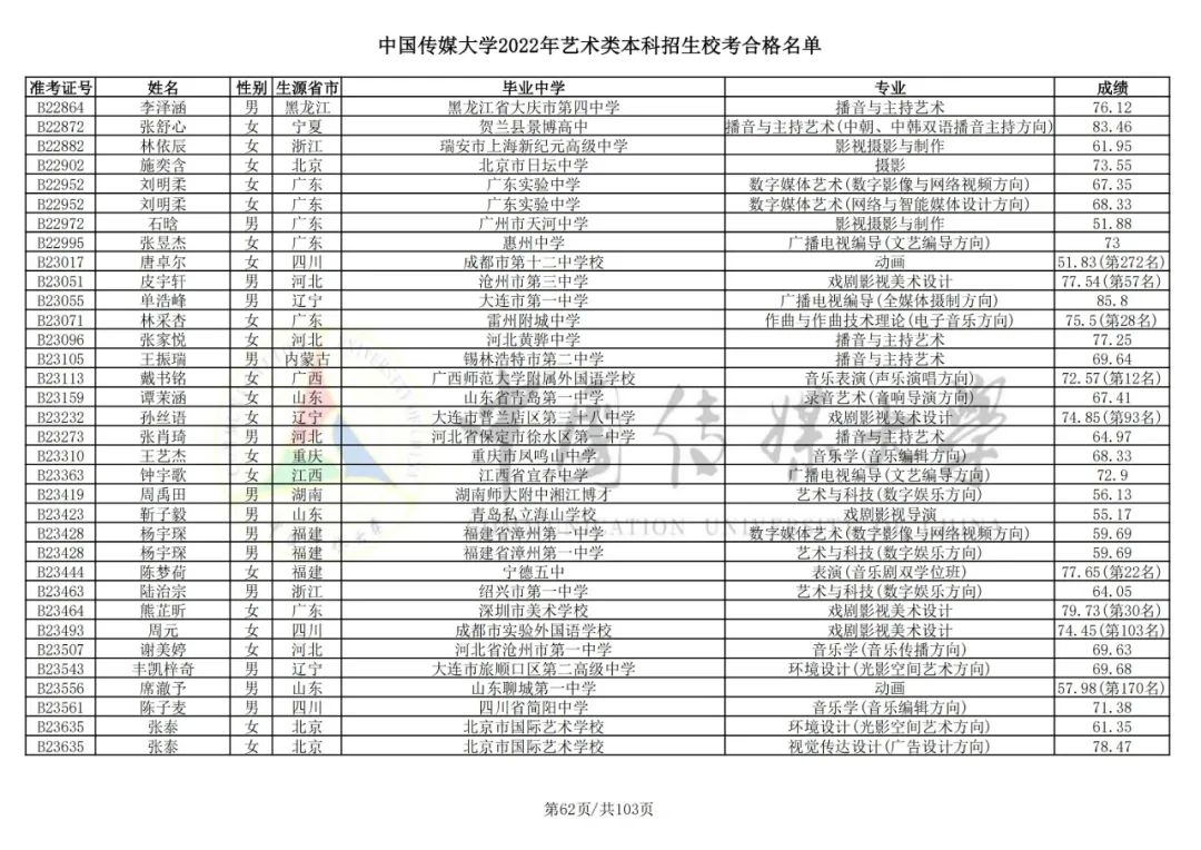 重磅!中国传媒大学2022艺术类本科招生校考合格名单公布!