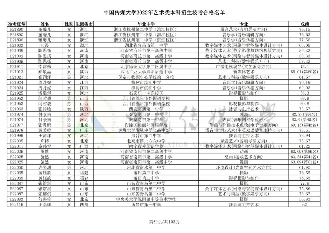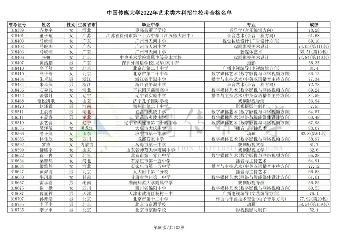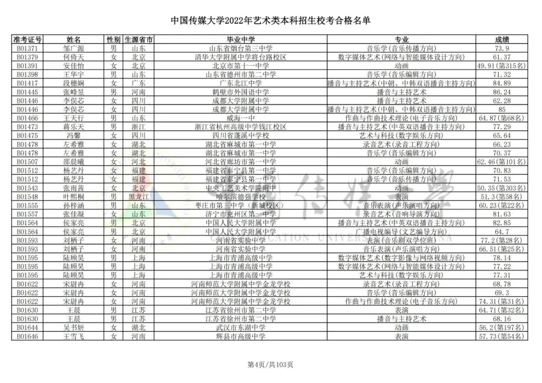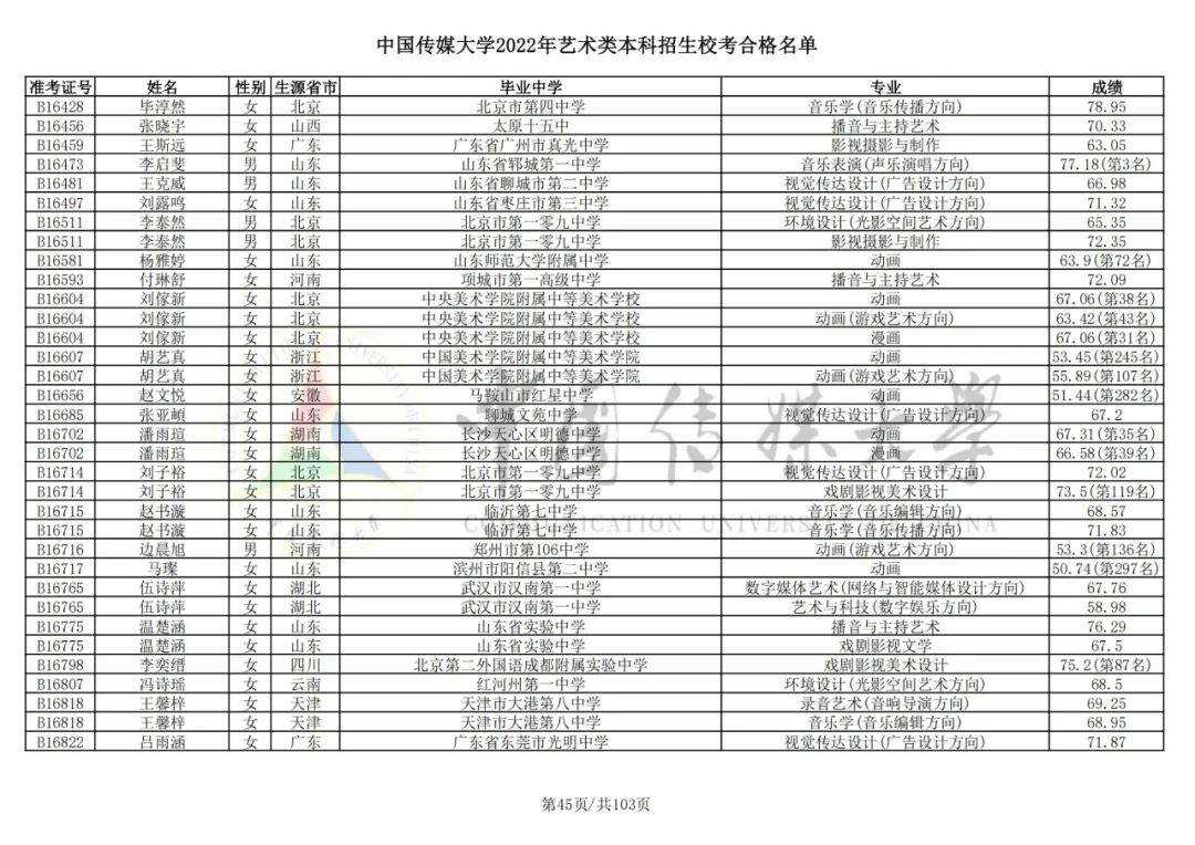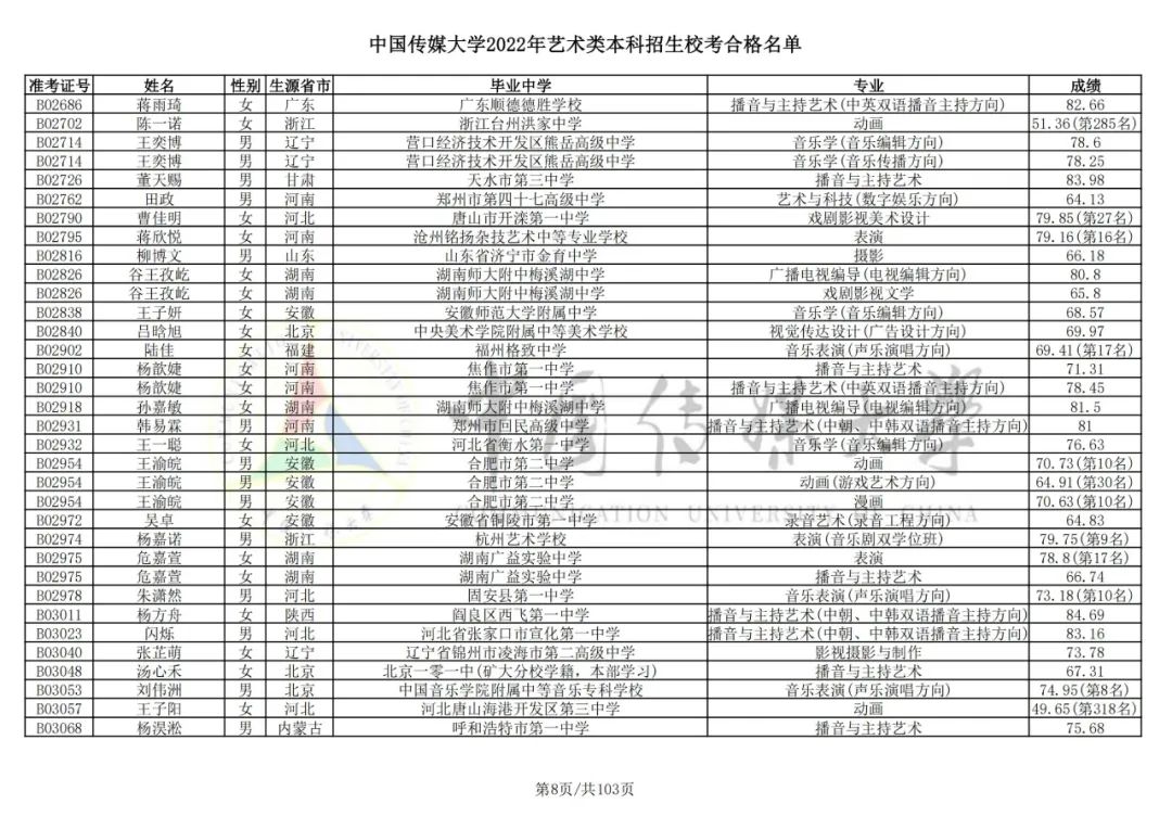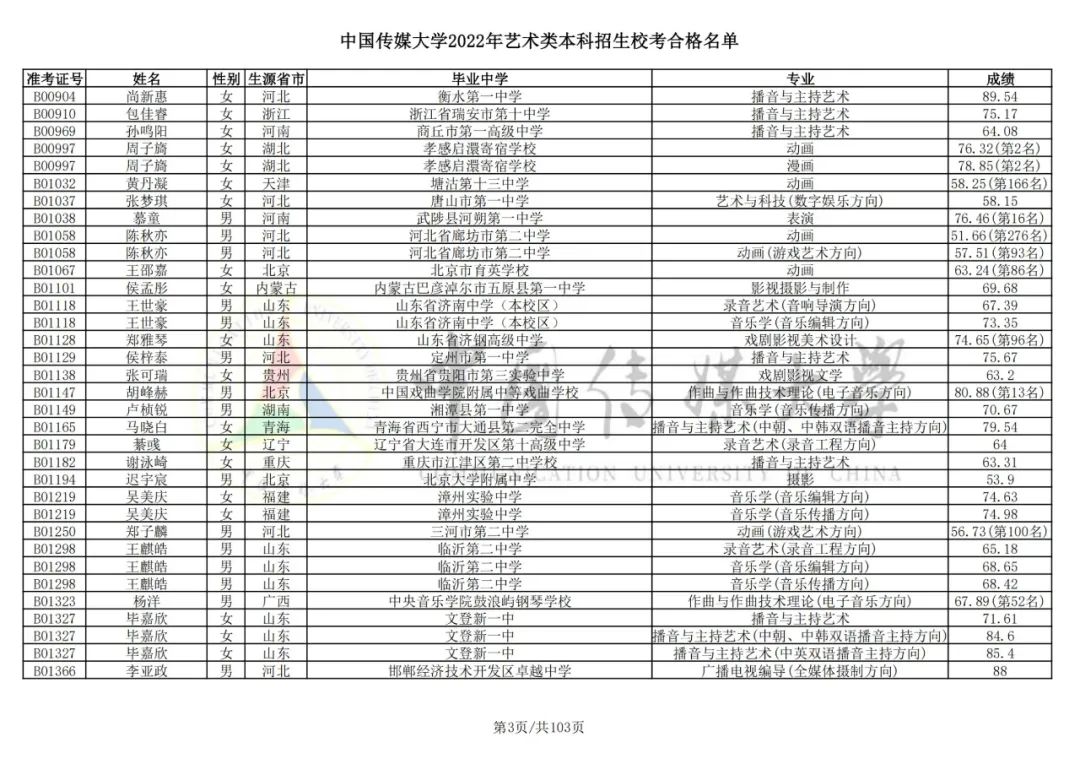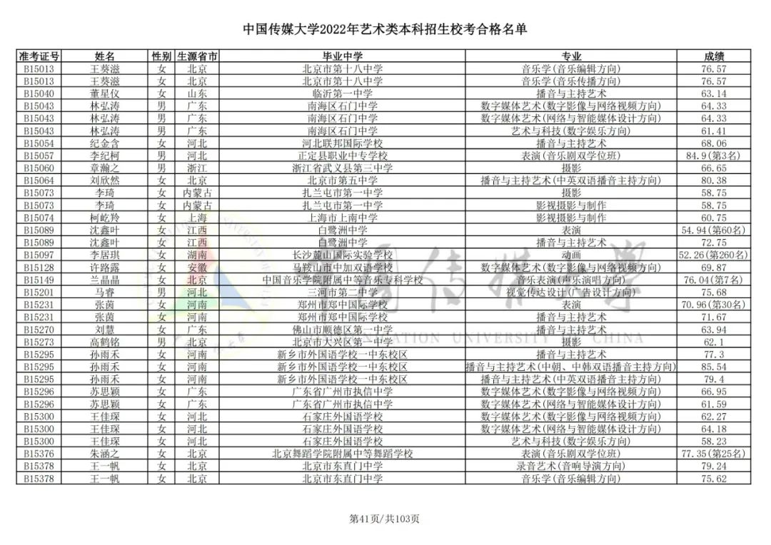 重磅!中国传媒大学2022艺术类本科招生校考合格名单公布!