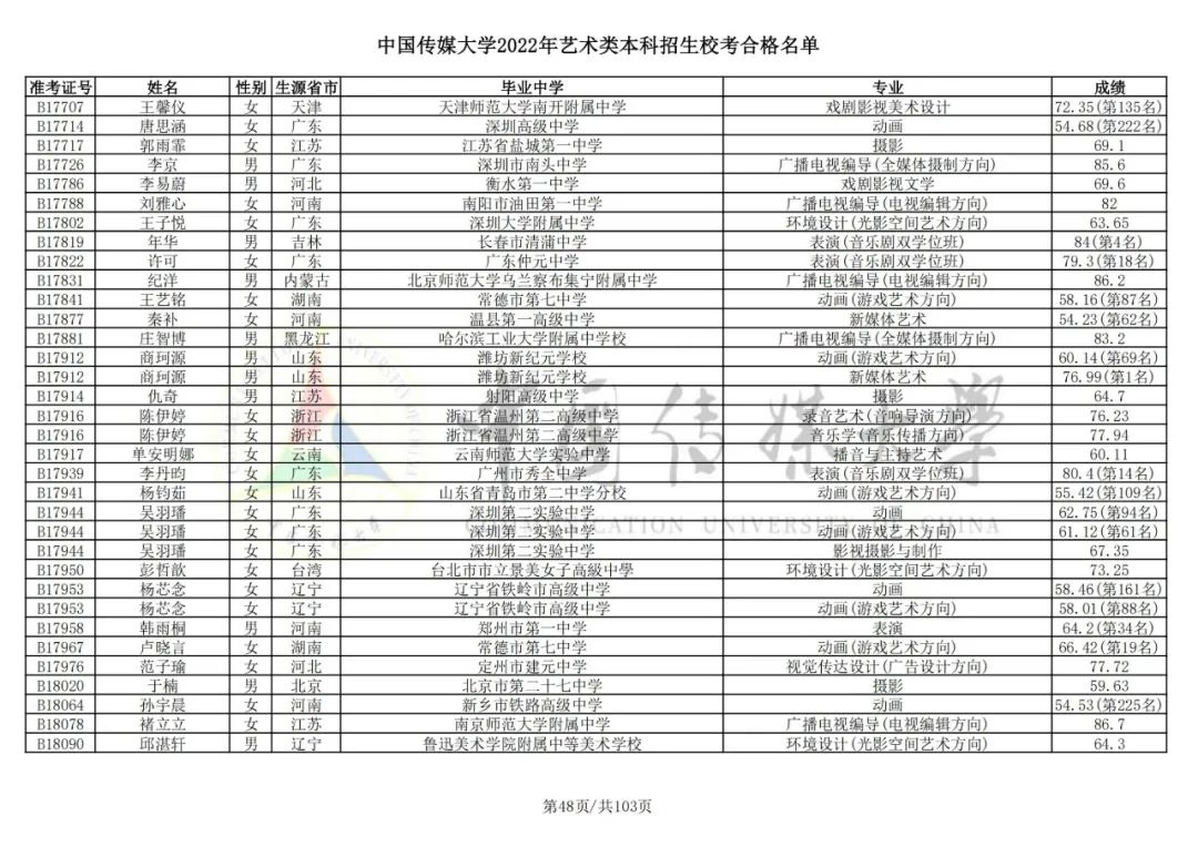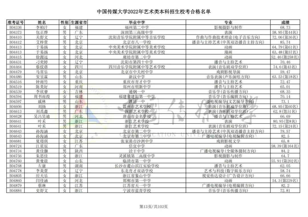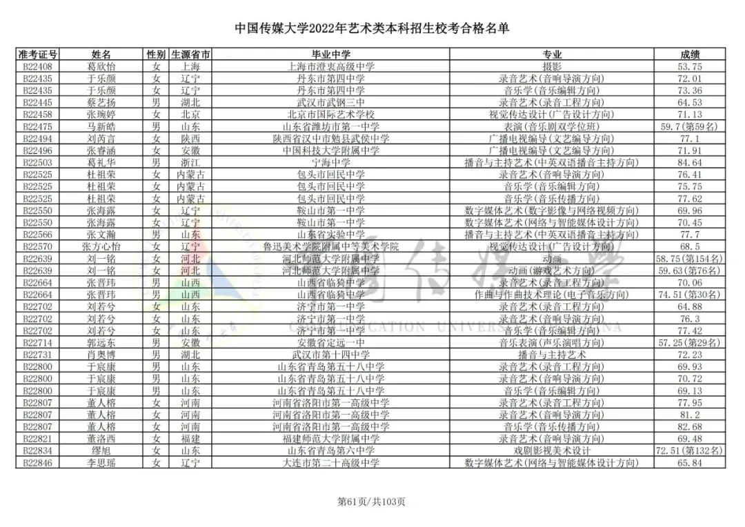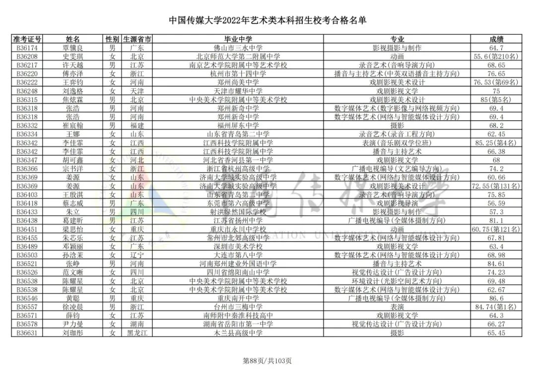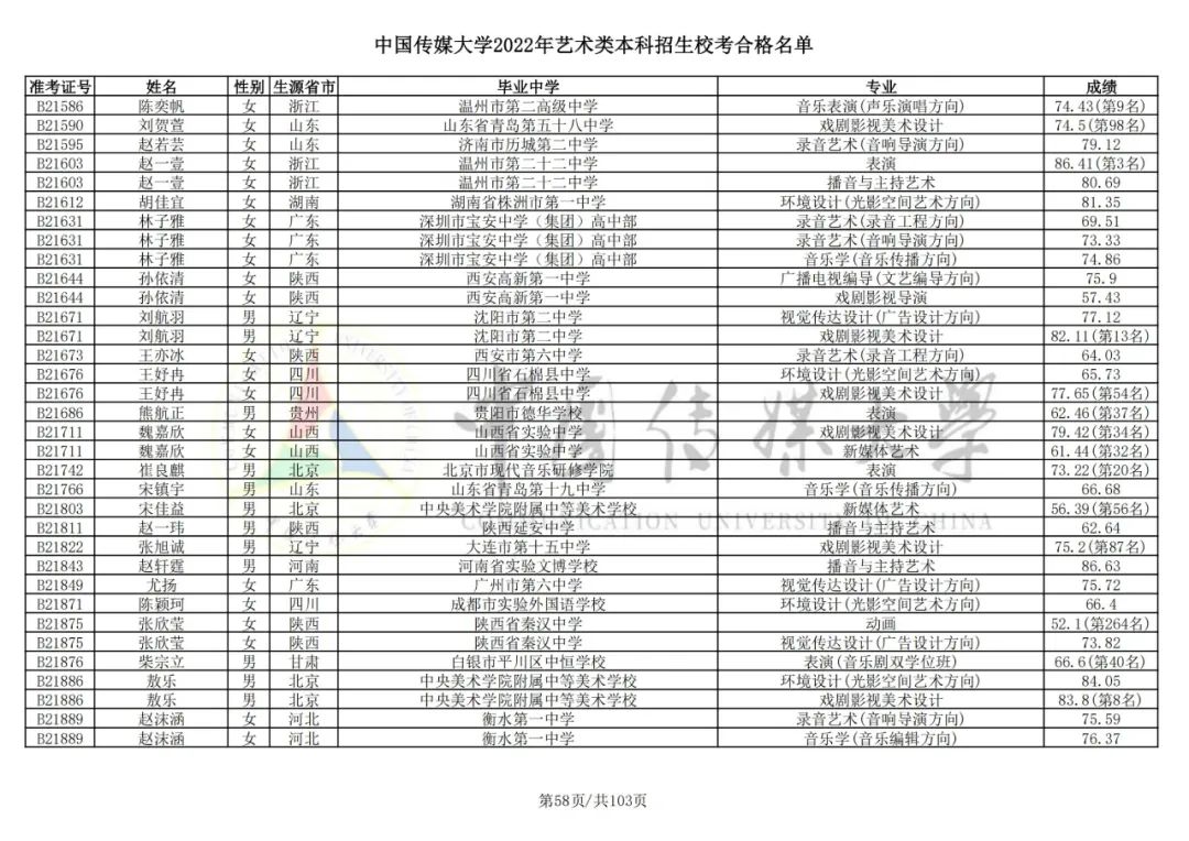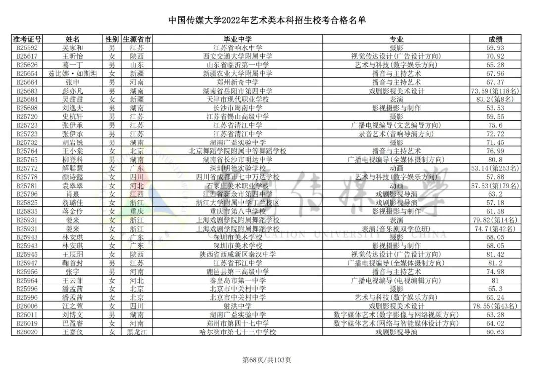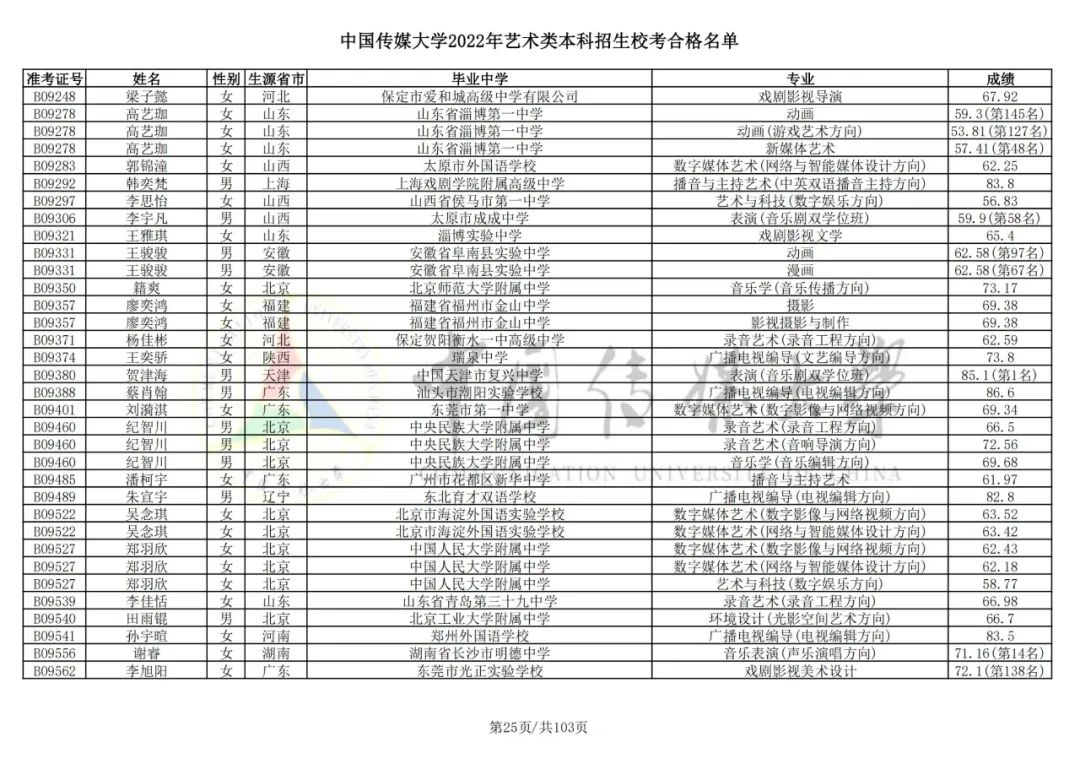 重磅!中国传媒大学2022艺术类本科招生校考合格名单公布!