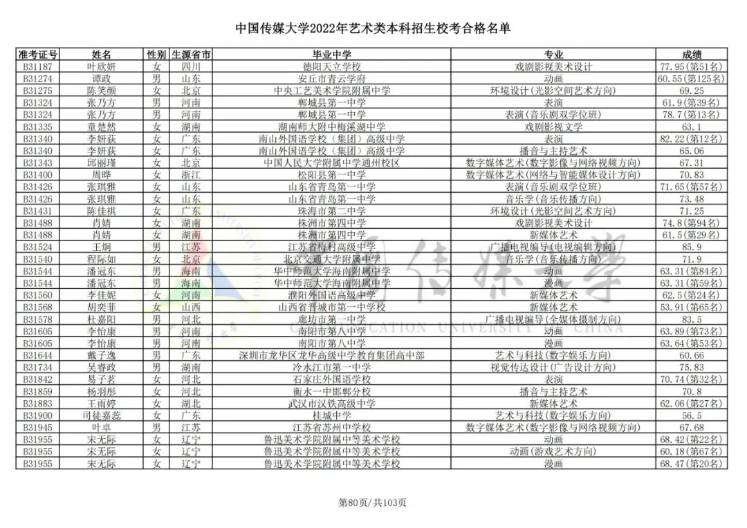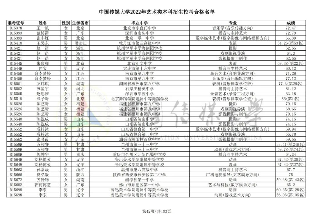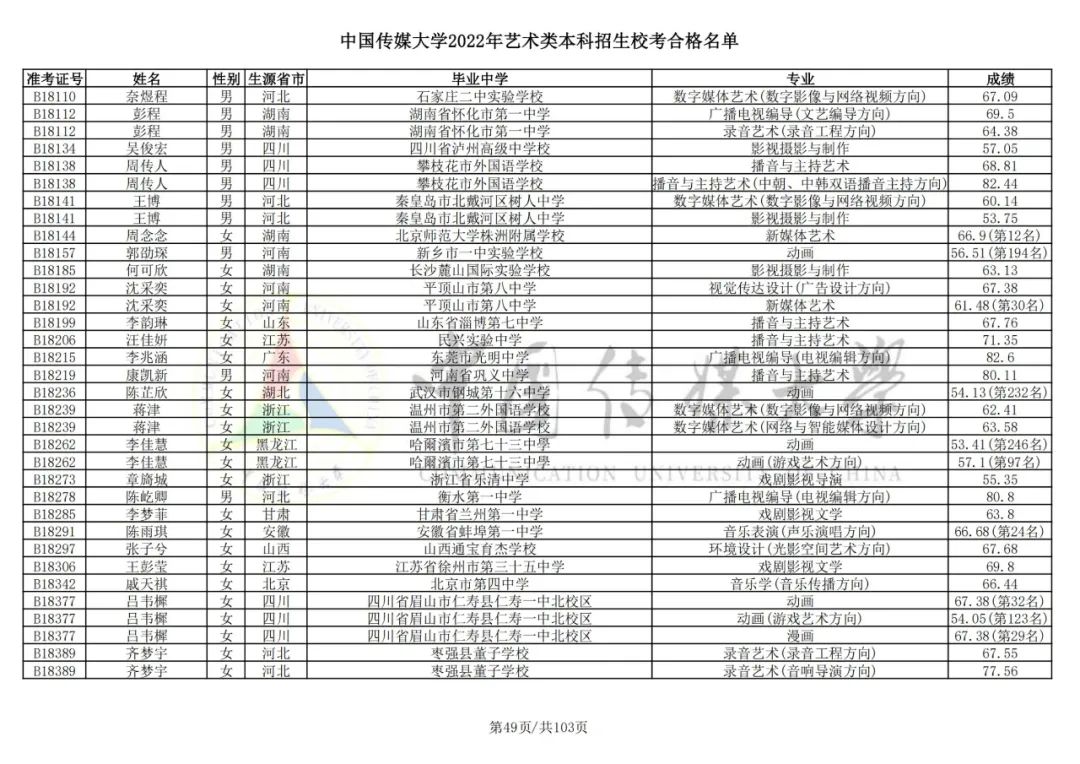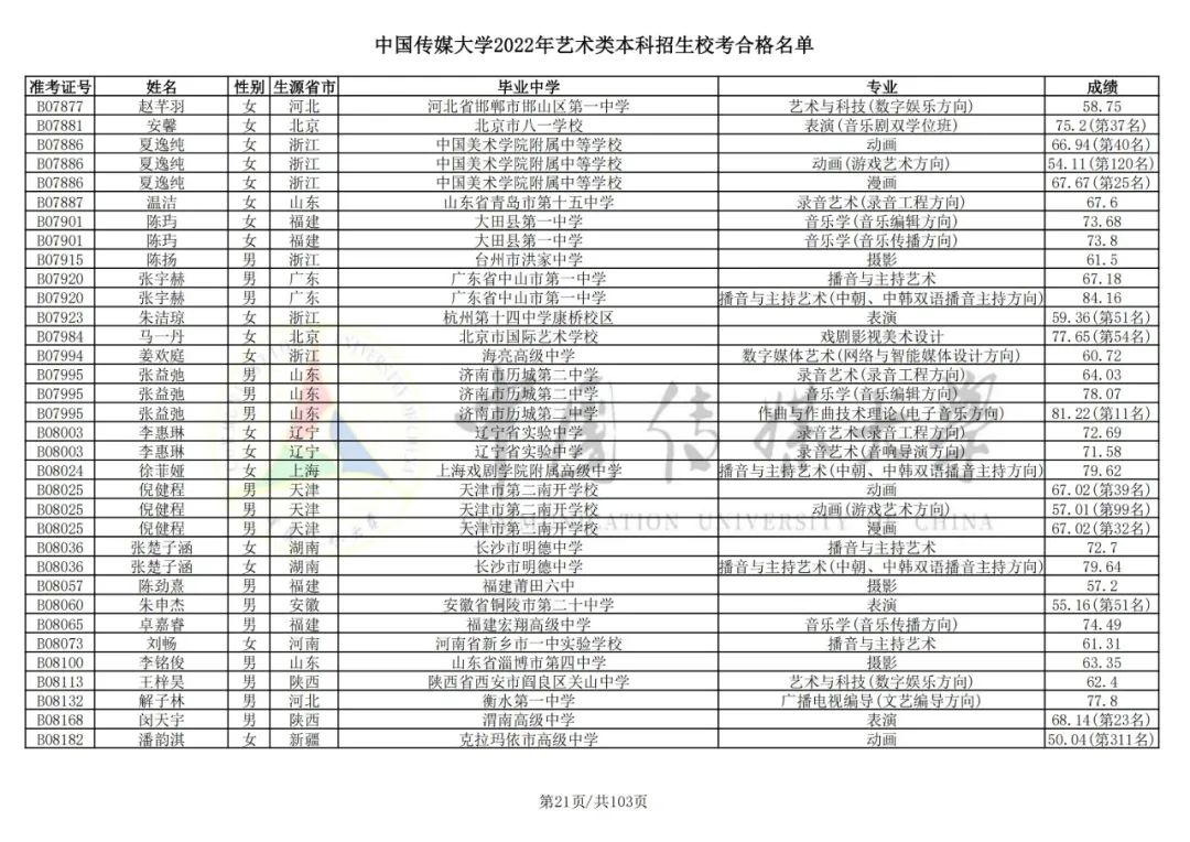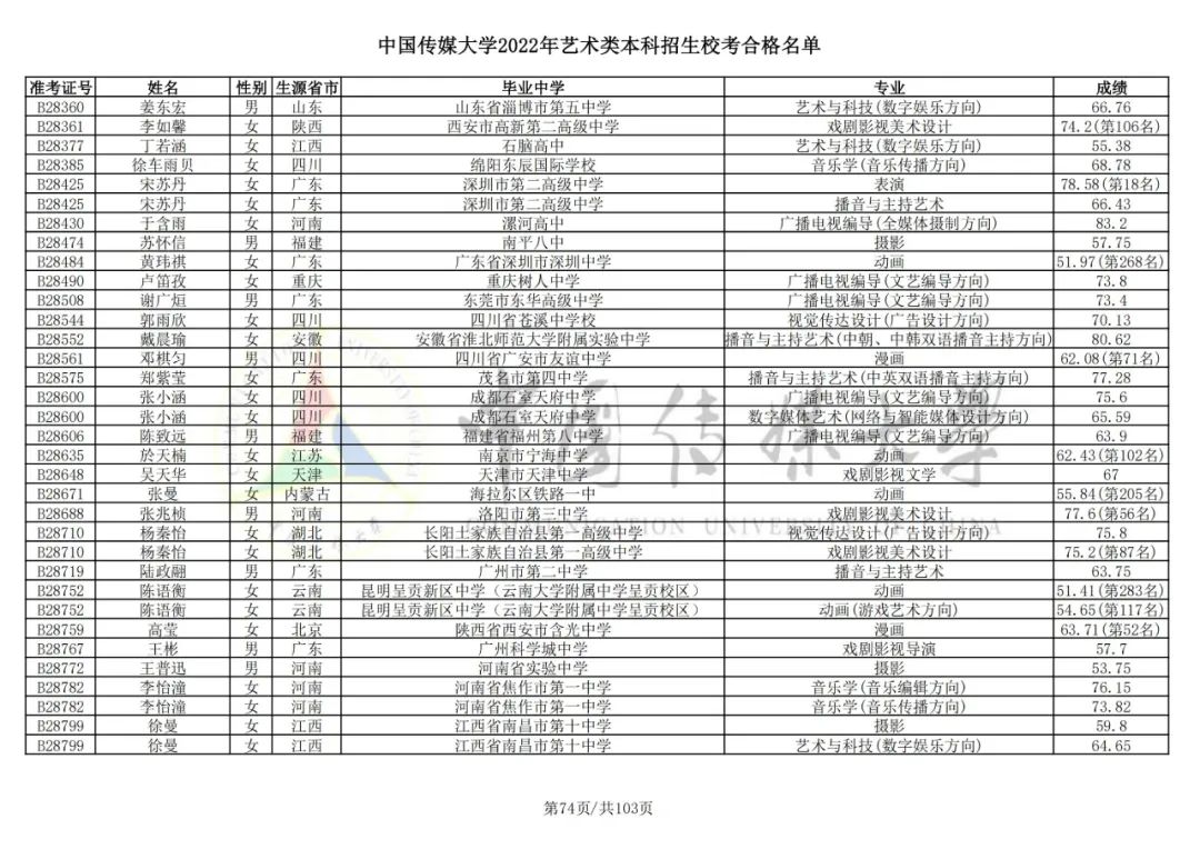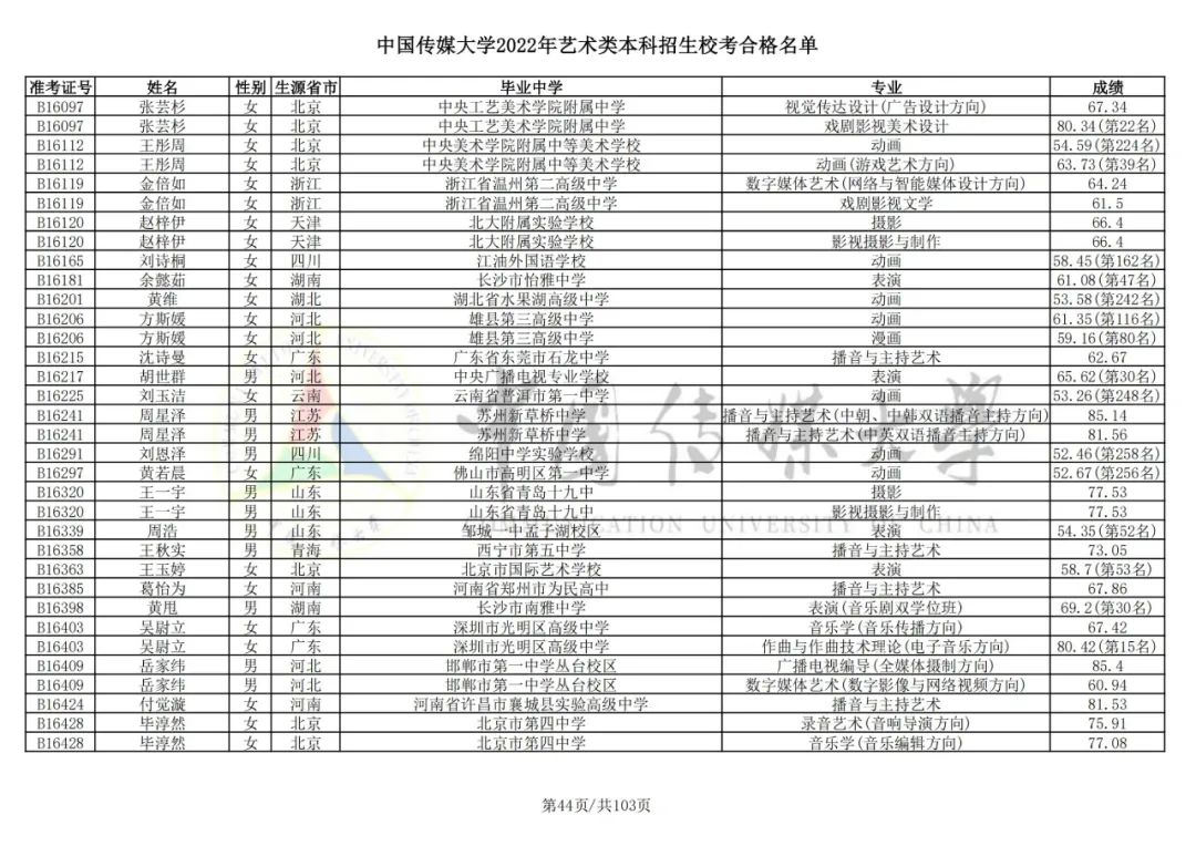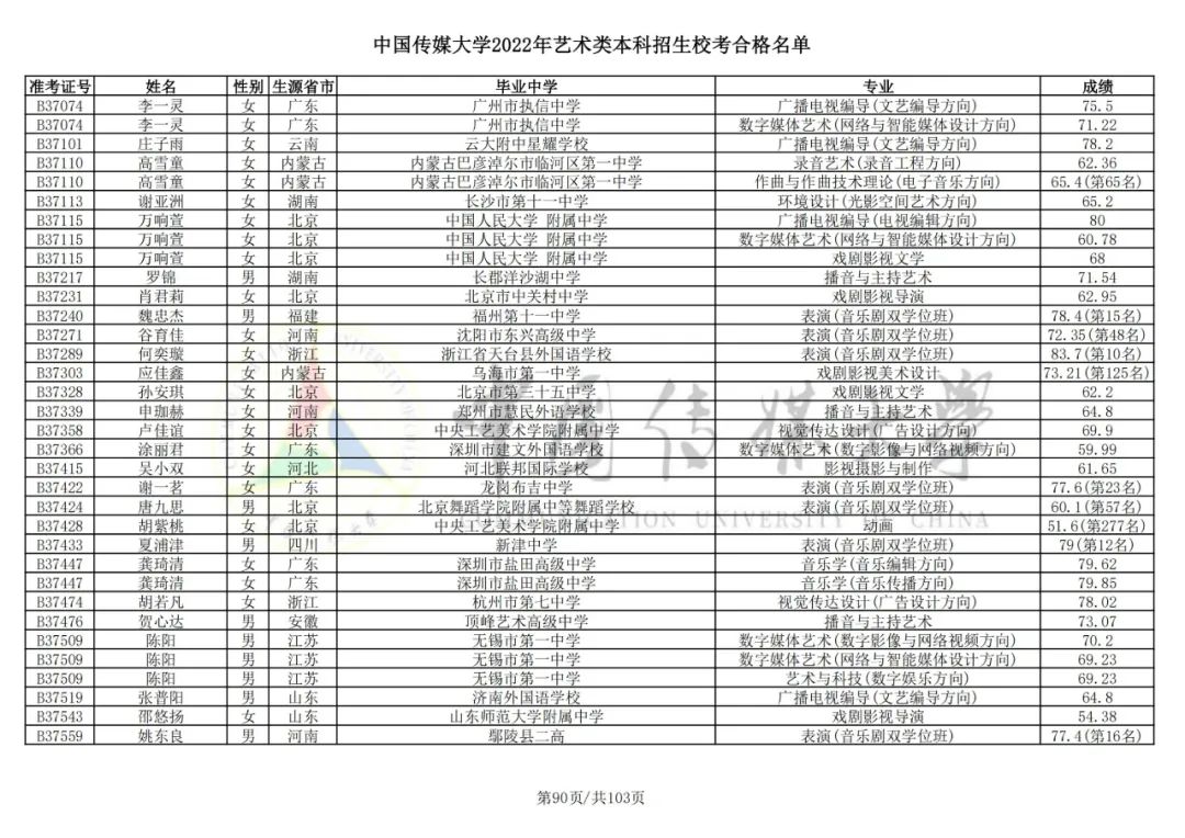 重磅!中国传媒大学2022艺术类本科招生校考合格名单公布!