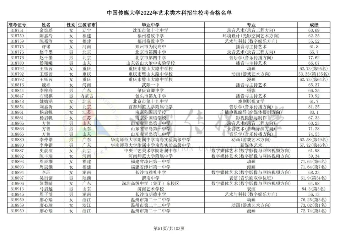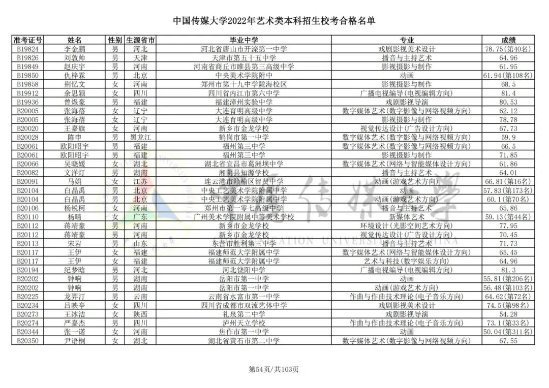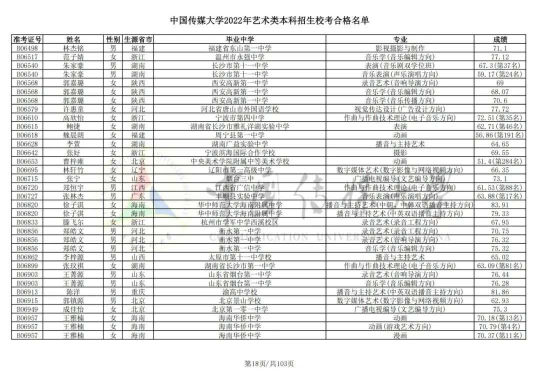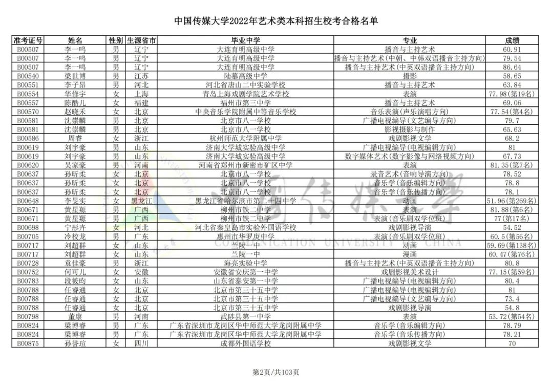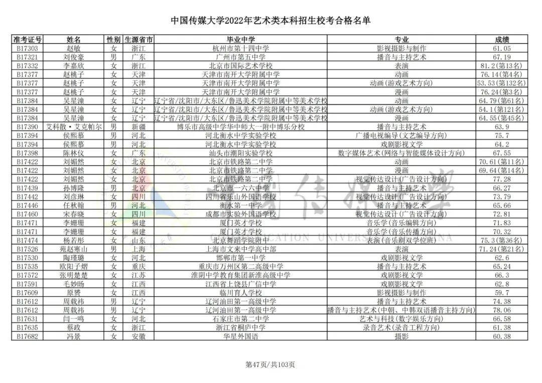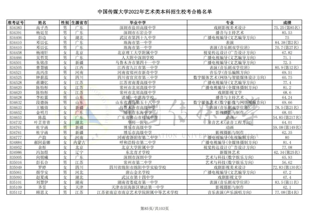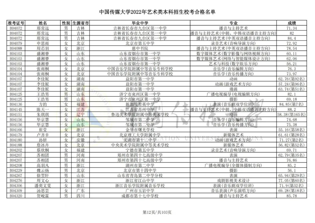 重磅!中国传媒大学2022艺术类本科招生校考合格名单公布!