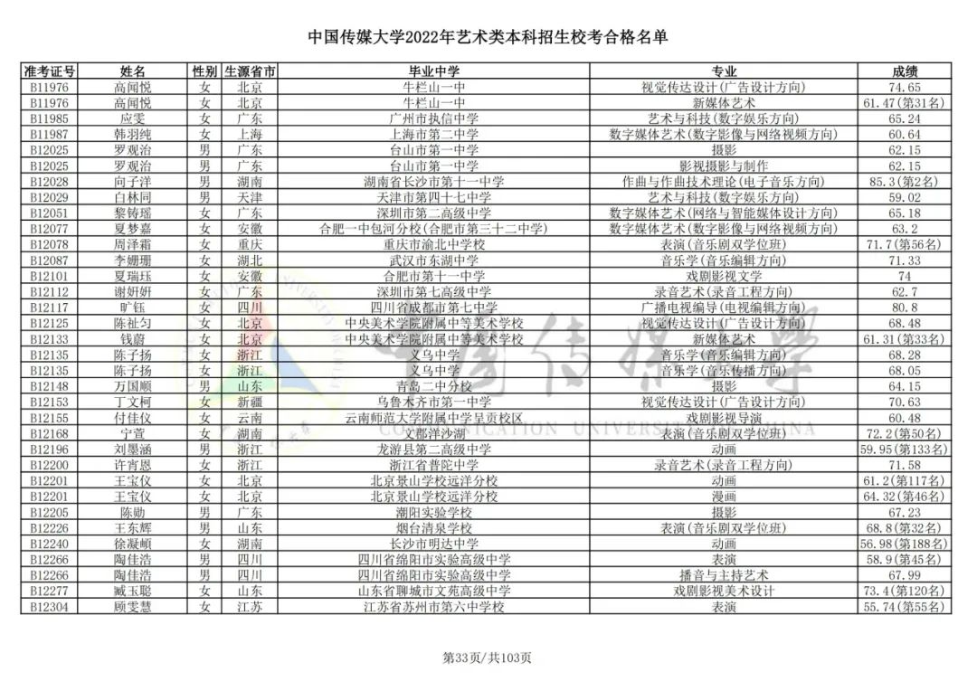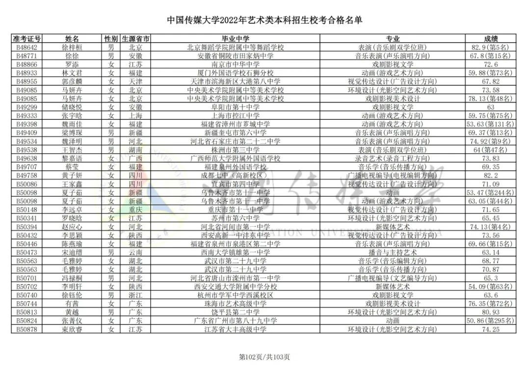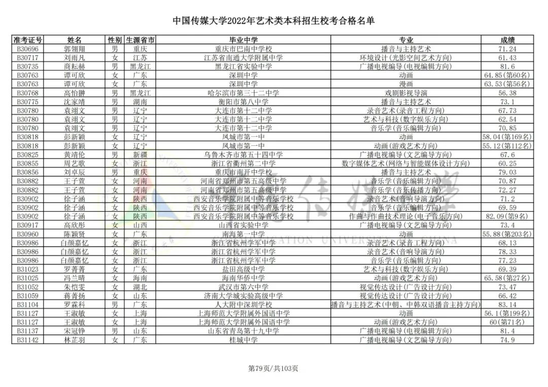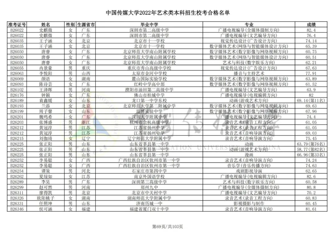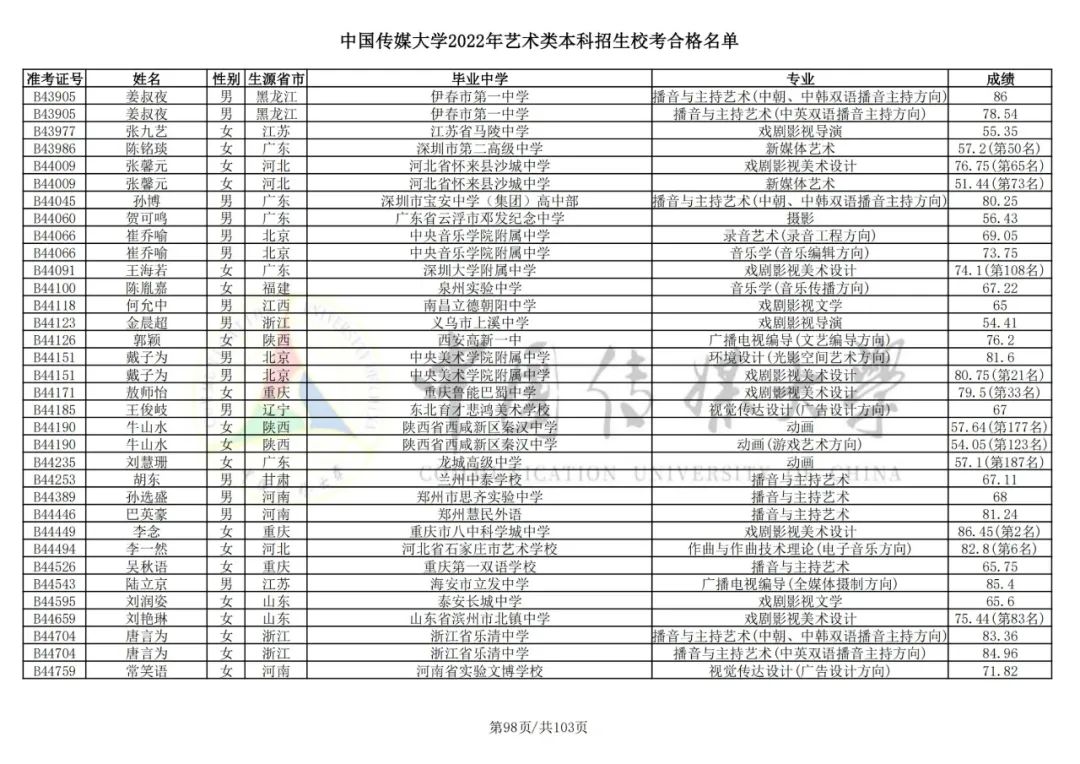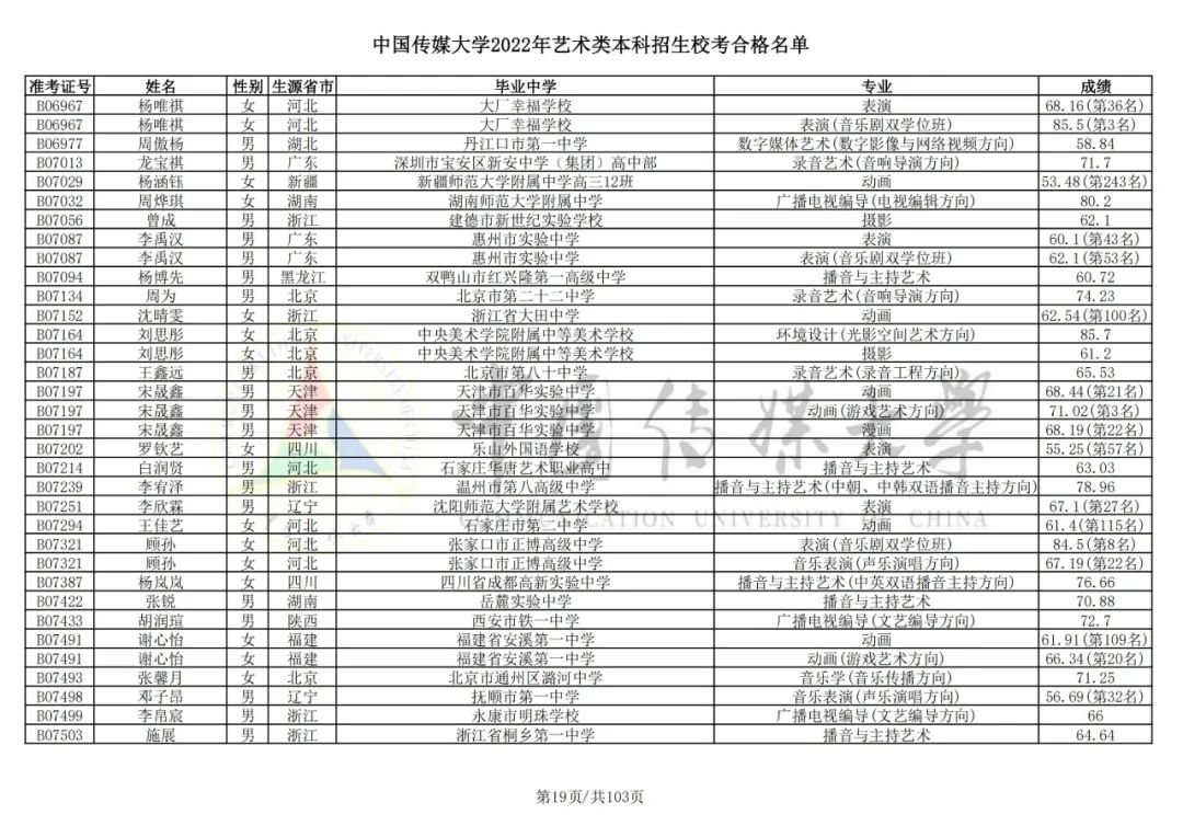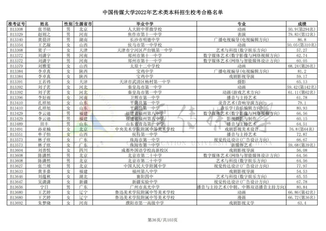 重磅!中国传媒大学2022艺术类本科招生校考合格名单公布!