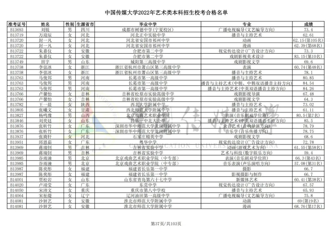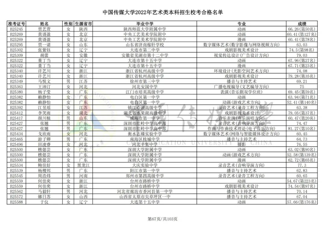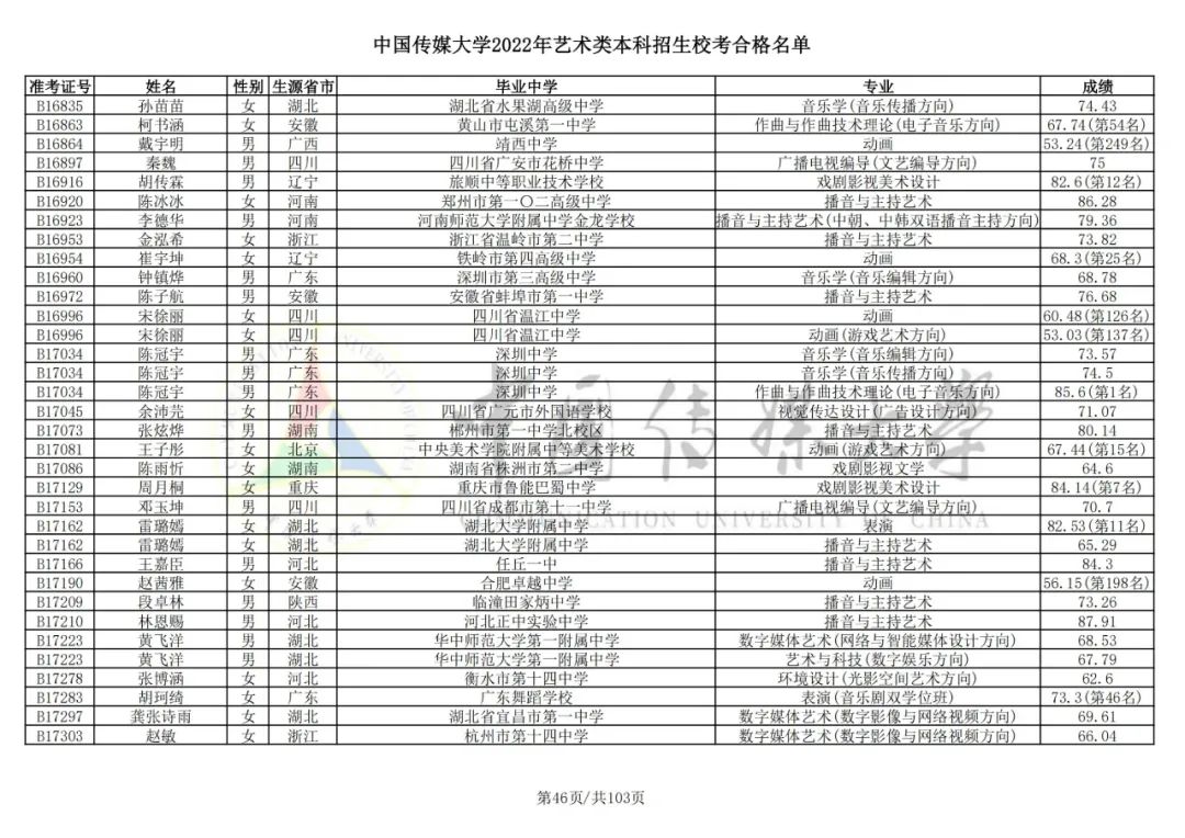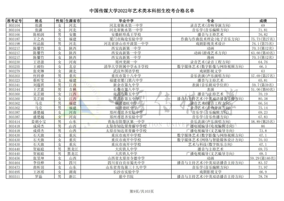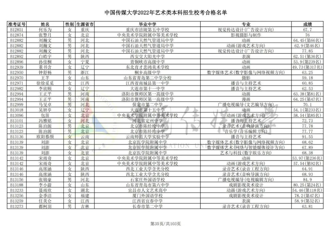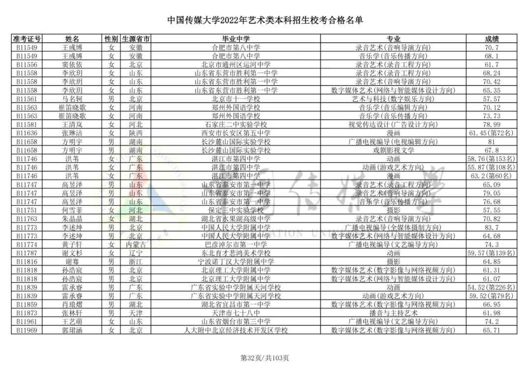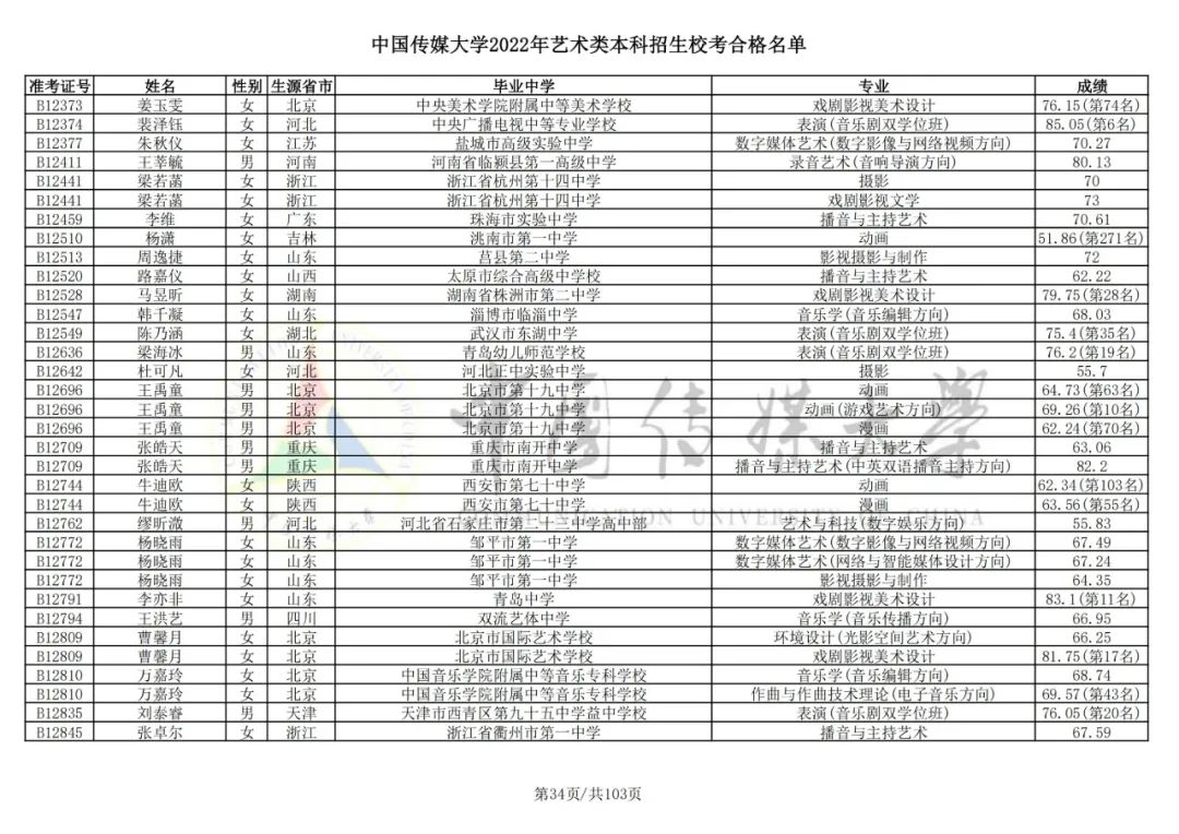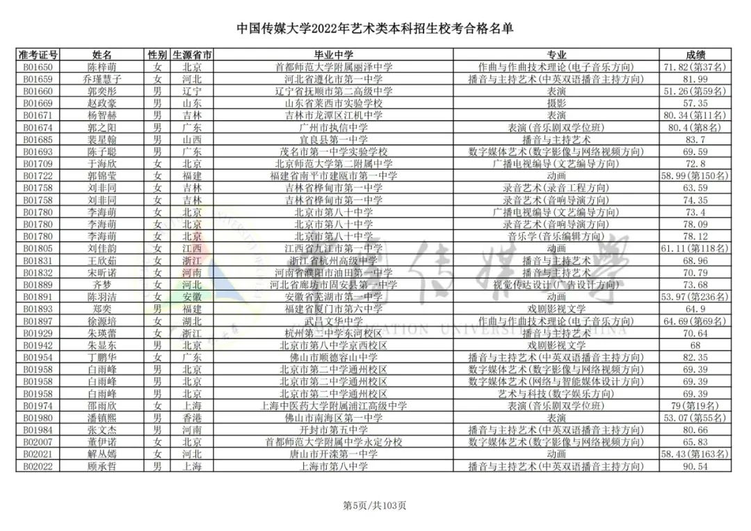 重磅!中国传媒大学2022艺术类本科招生校考合格名单公布!