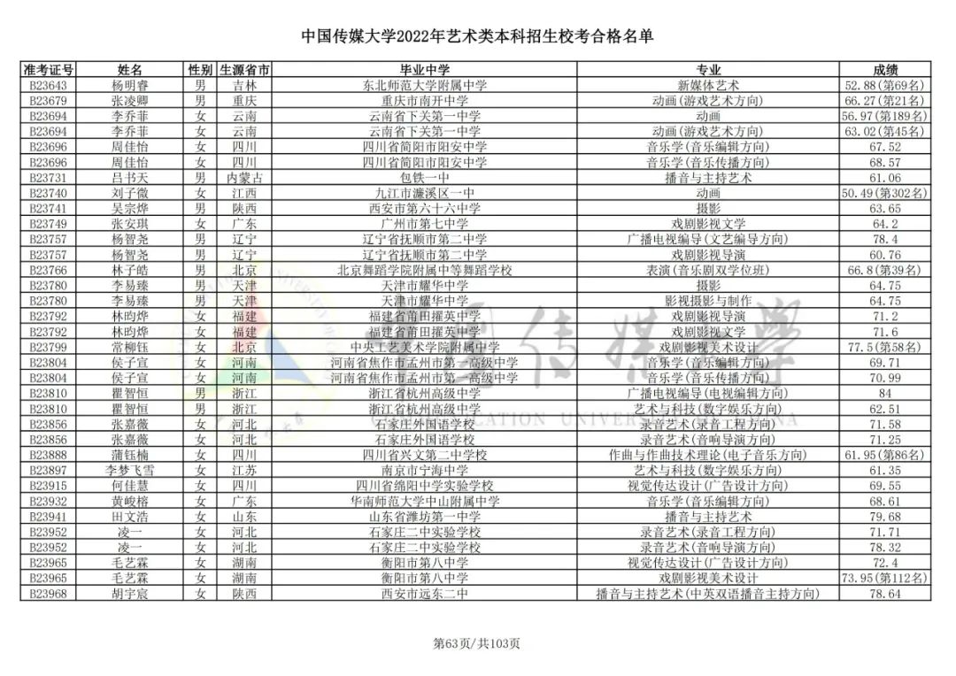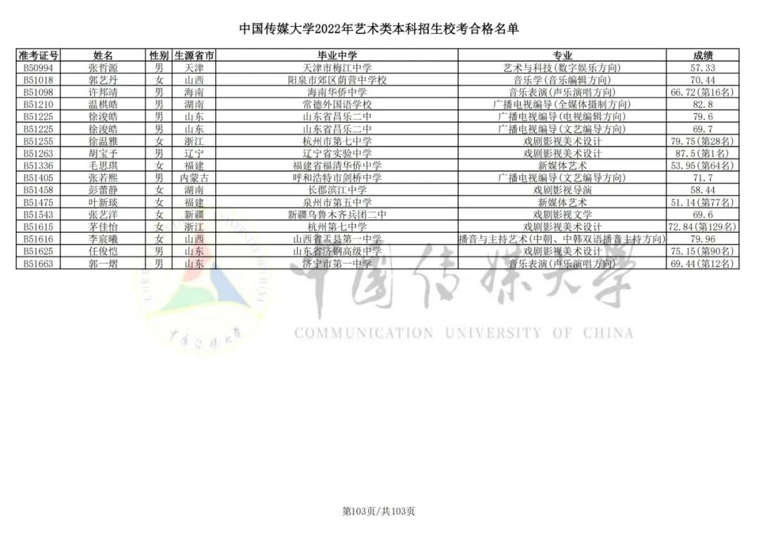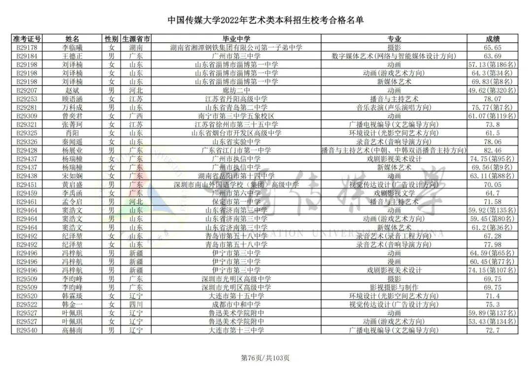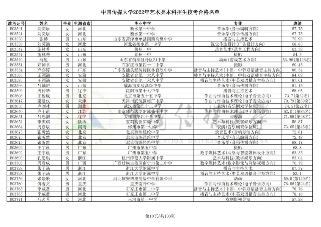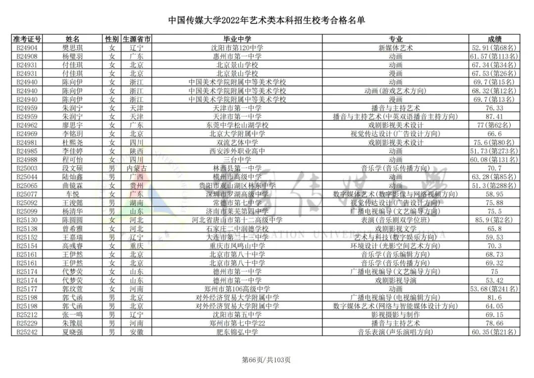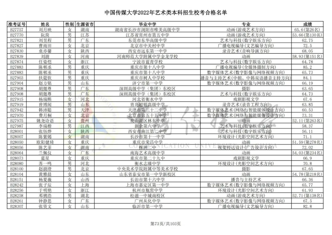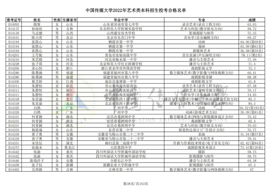 重磅!中国传媒大学2022艺术类本科招生校考合格名单公布!
