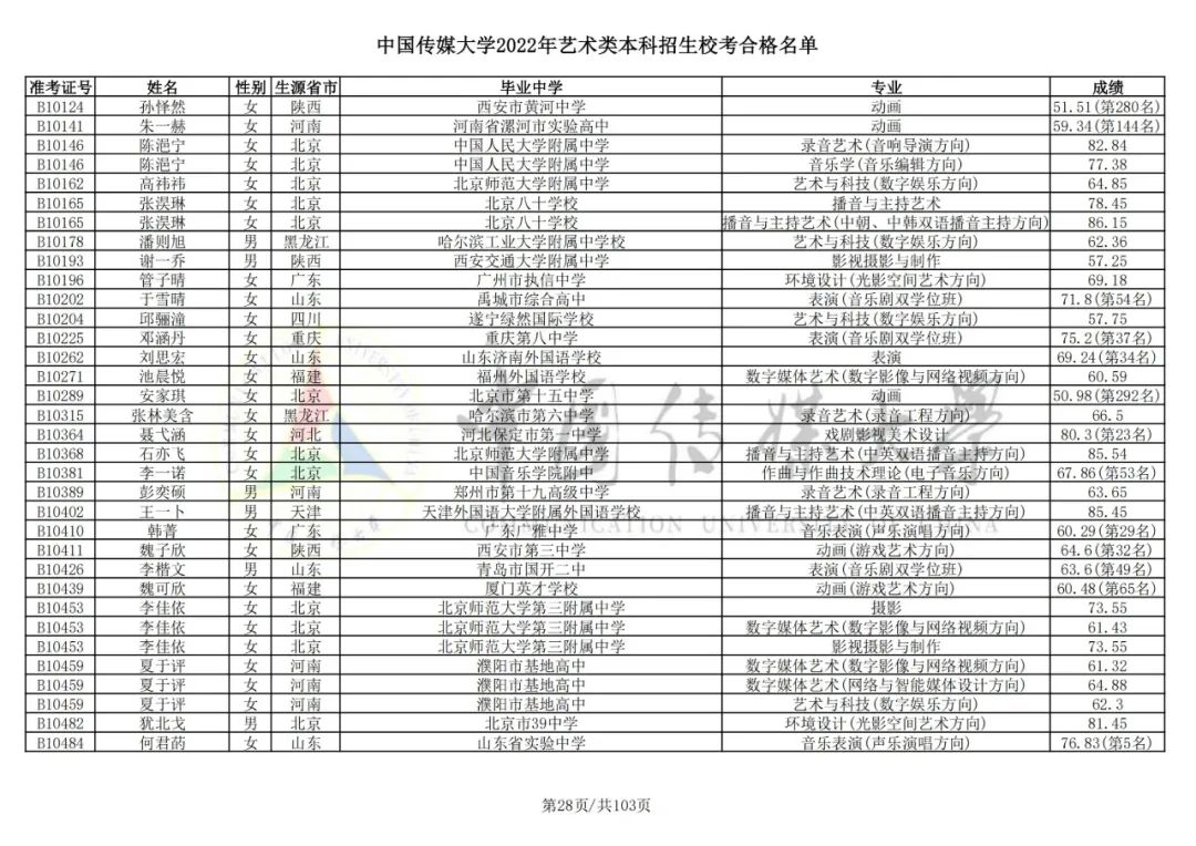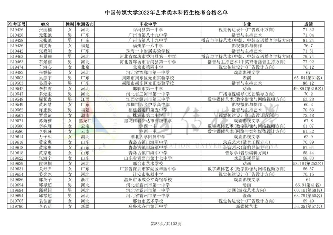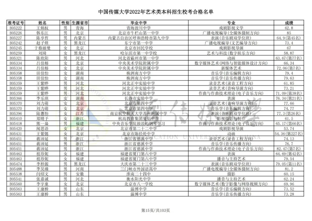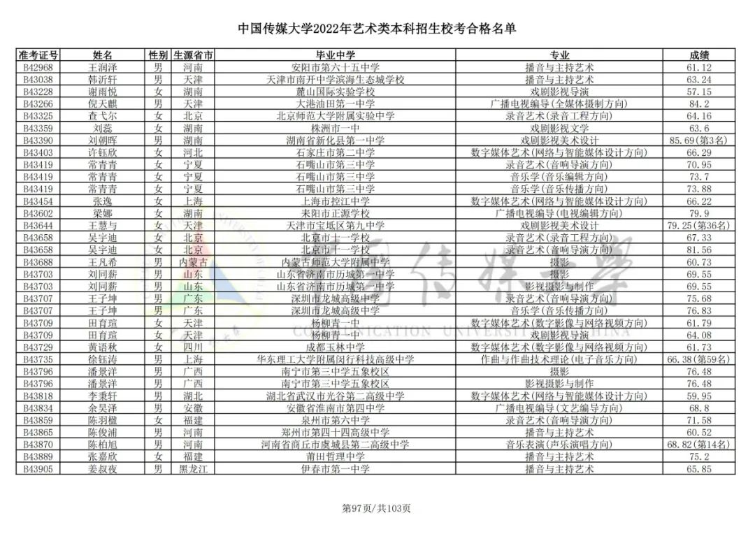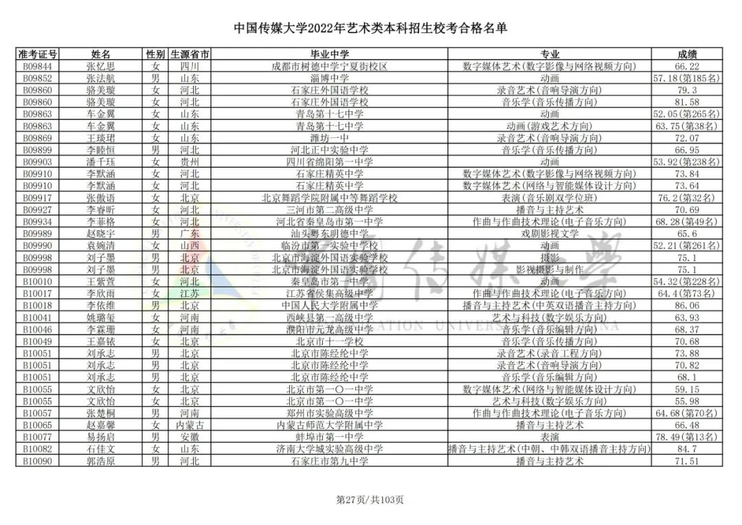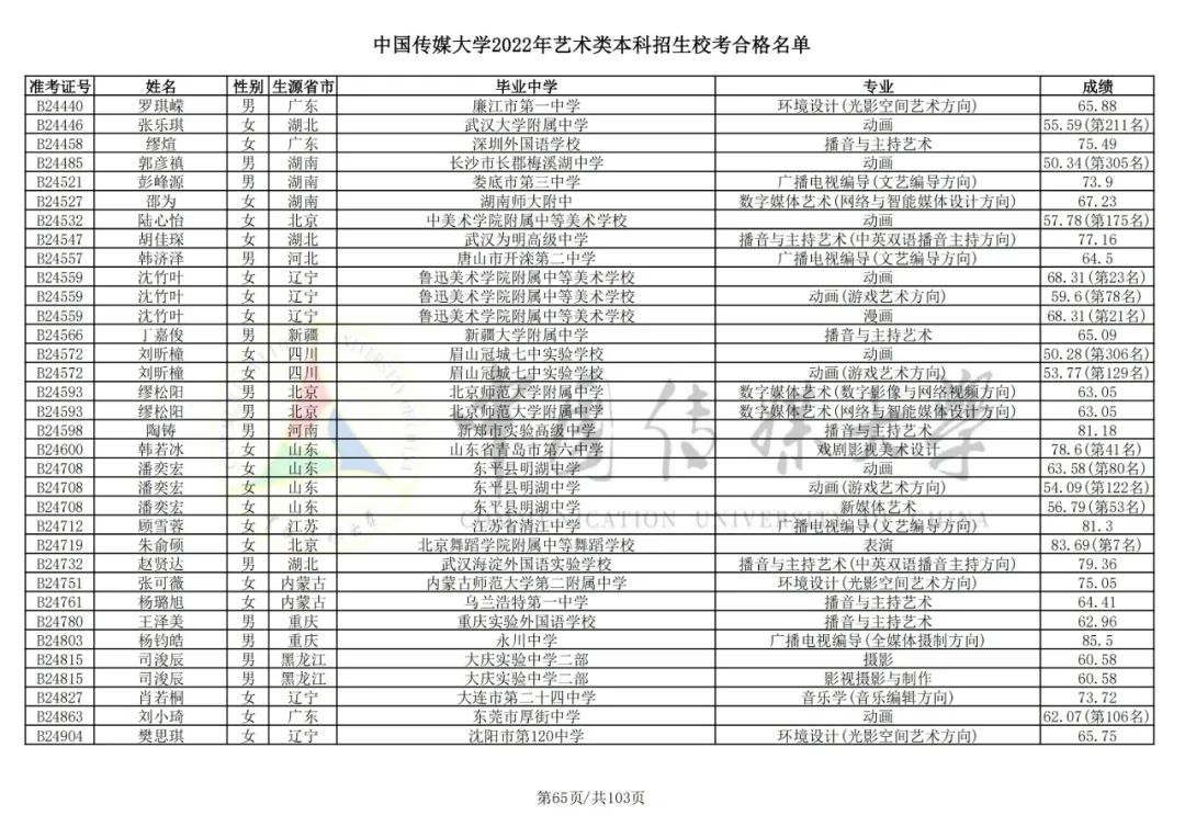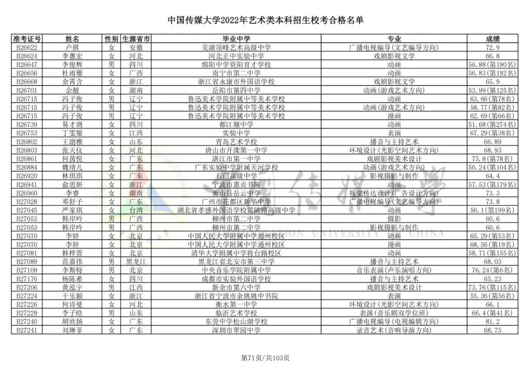 重磅!中国传媒大学2022艺术类本科招生校考合格名单公布!