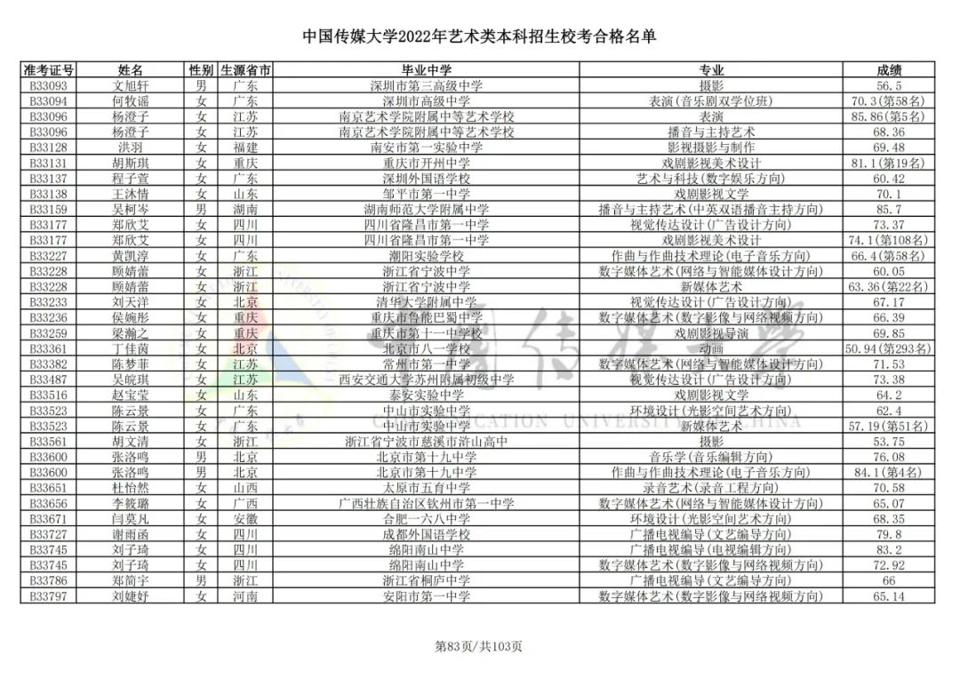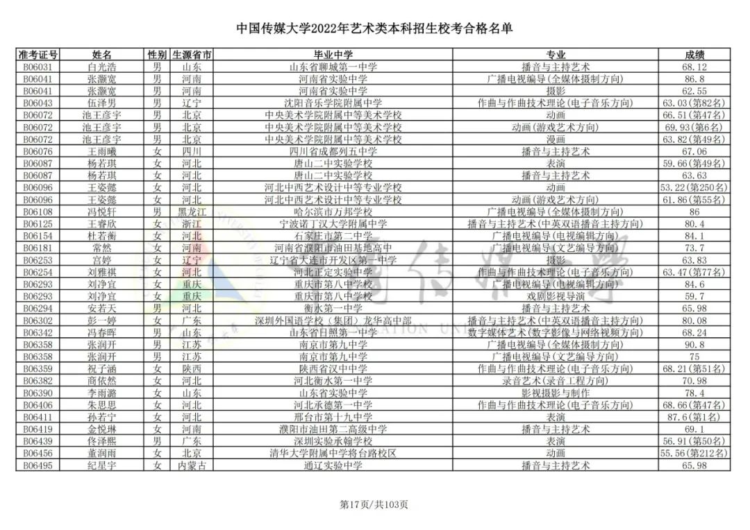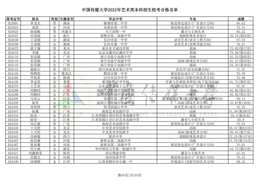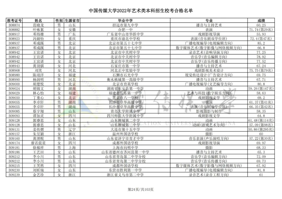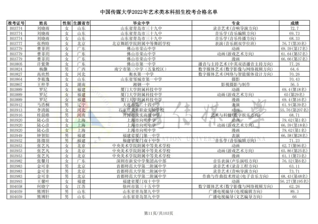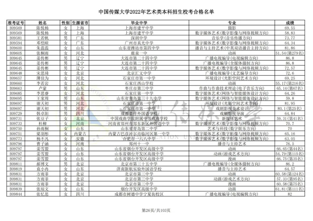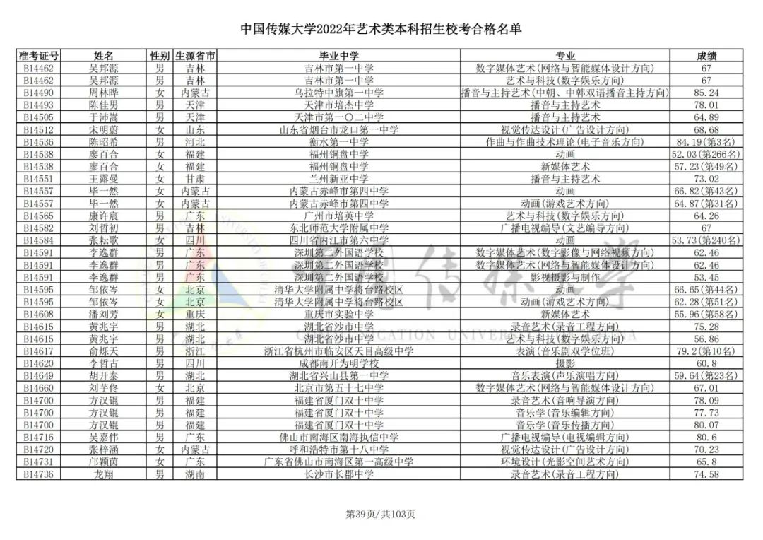 重磅!中国传媒大学2022艺术类本科招生校考合格名单公布!