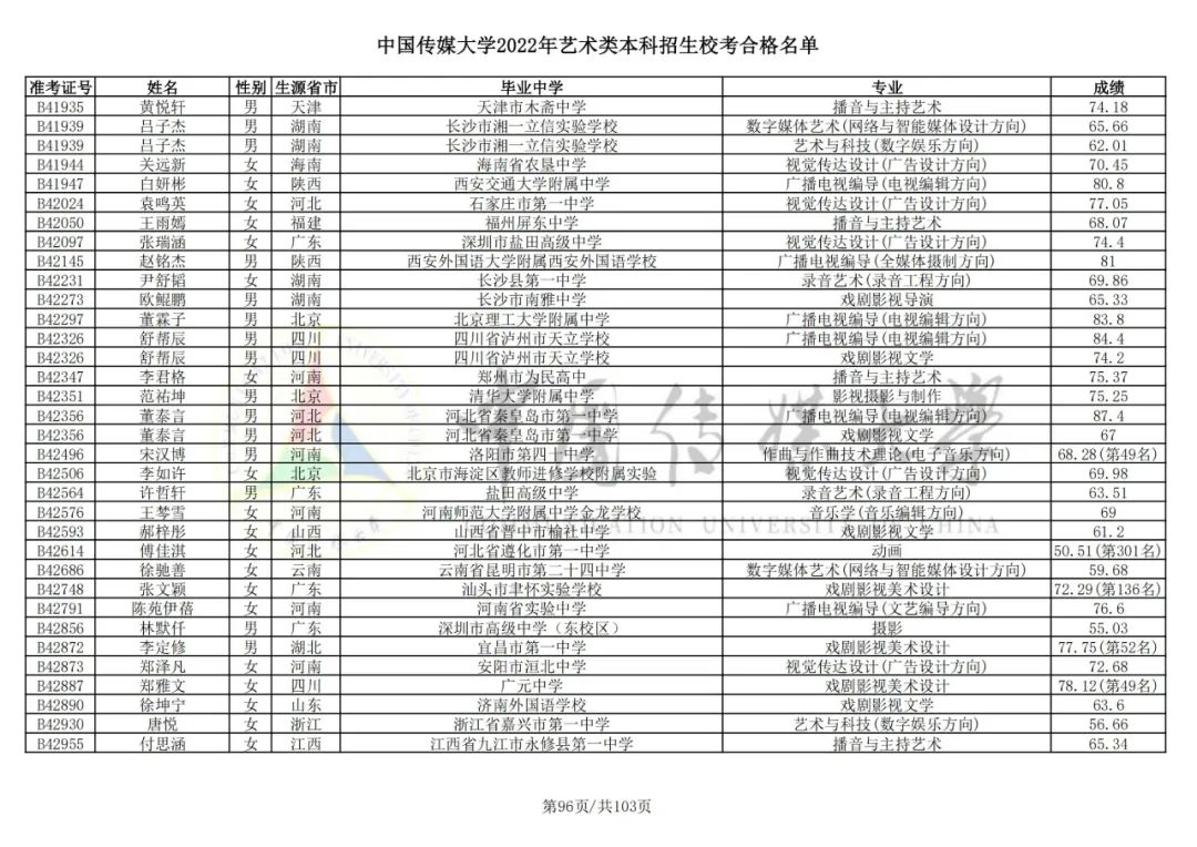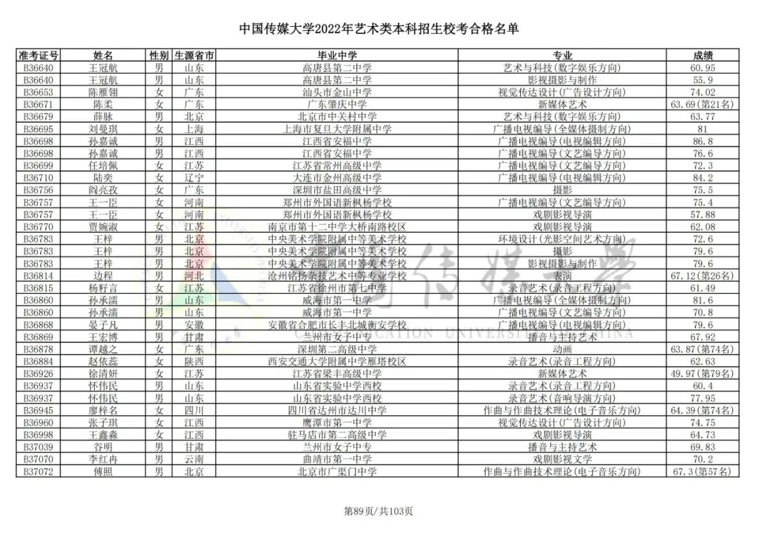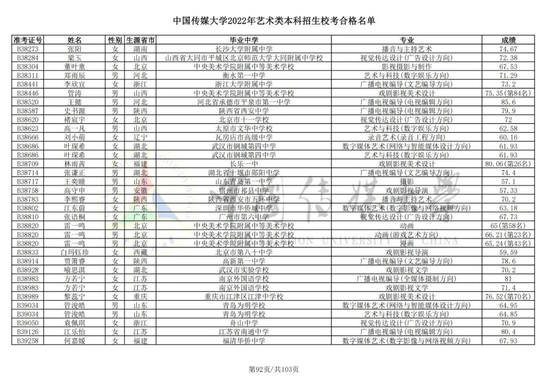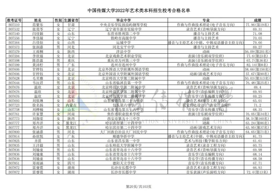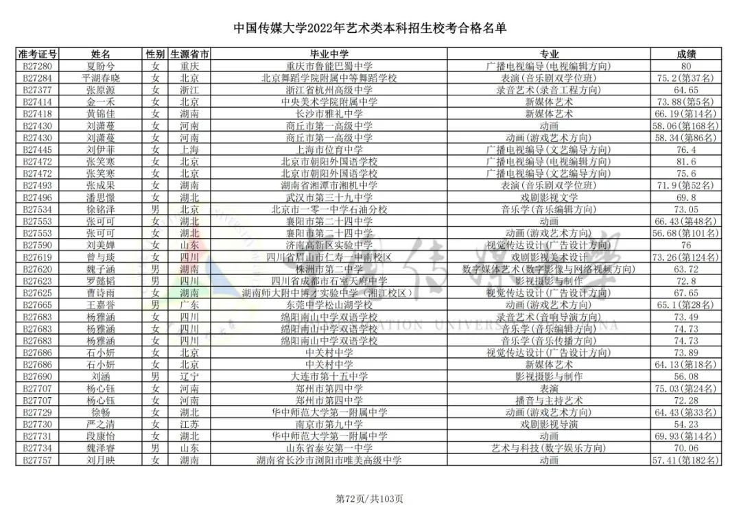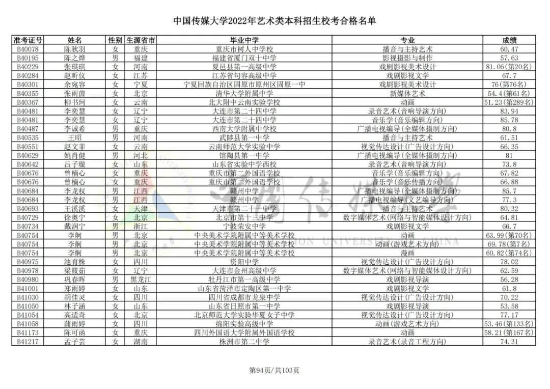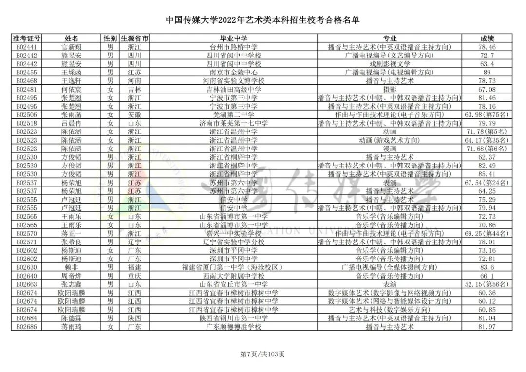 重磅!中国传媒大学2022艺术类本科招生校考合格名单公布!
