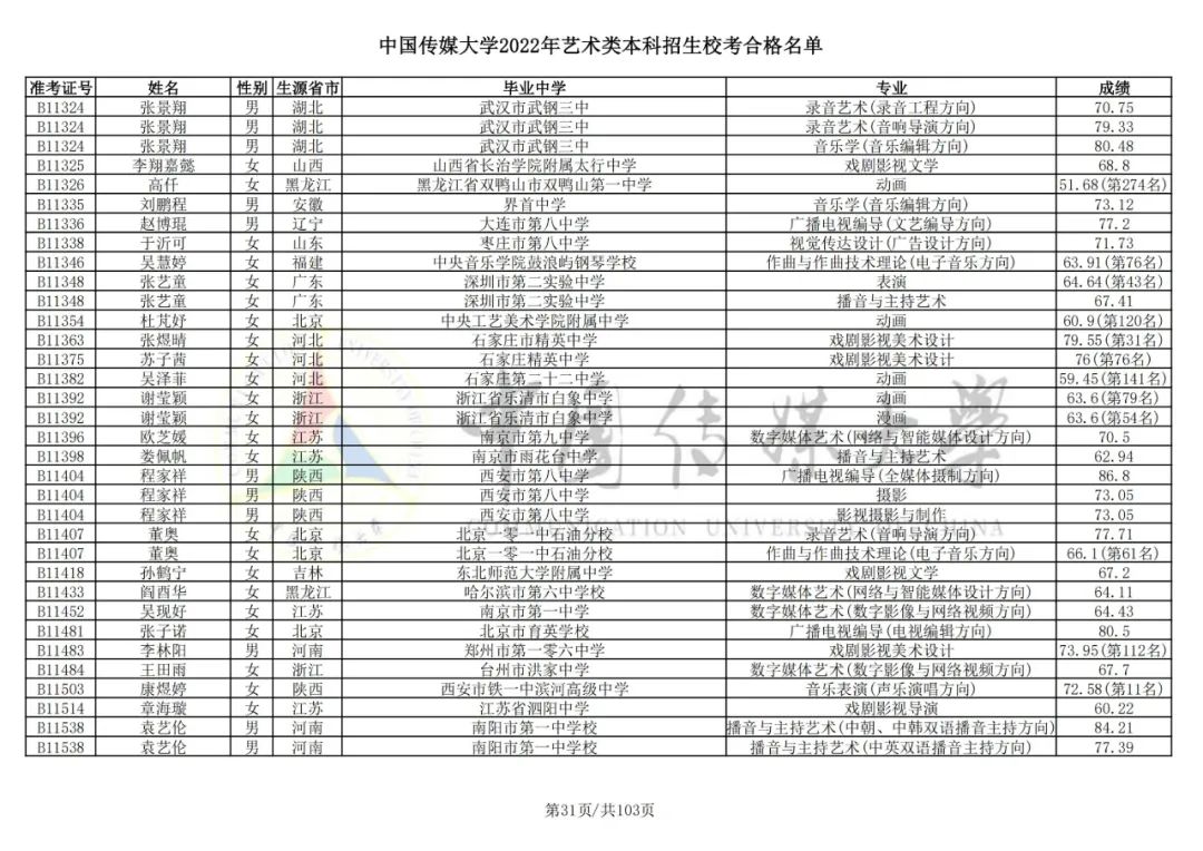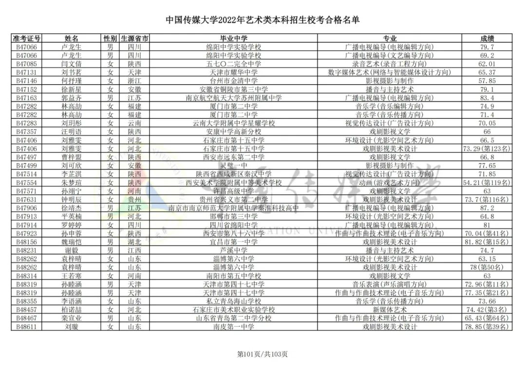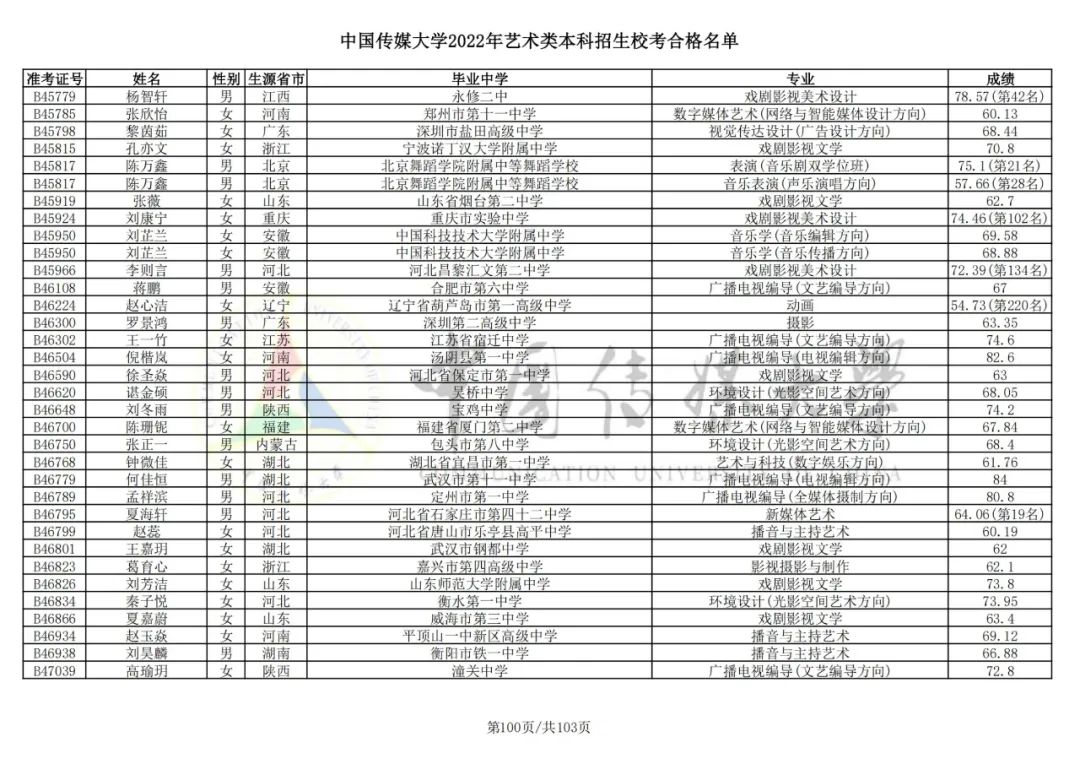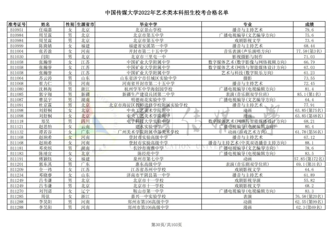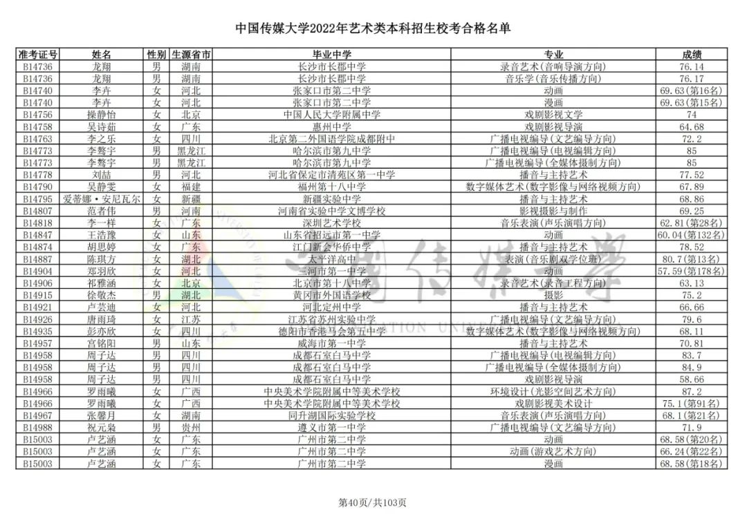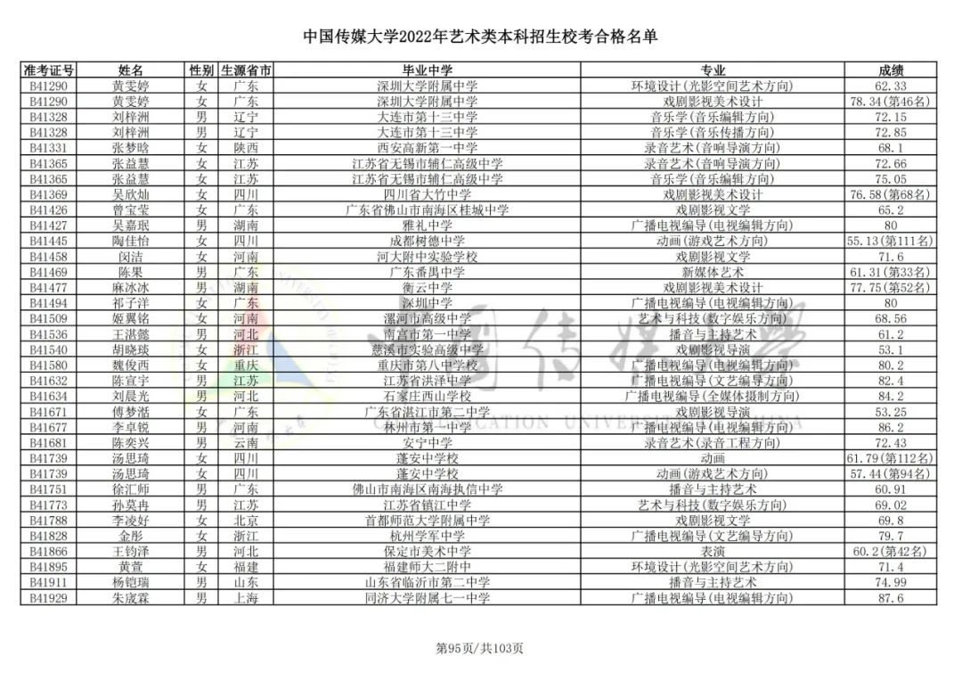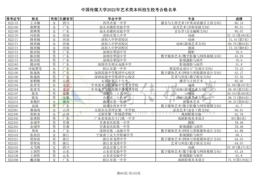 重磅!中国传媒大学2022艺术类本科招生校考合格名单公布!