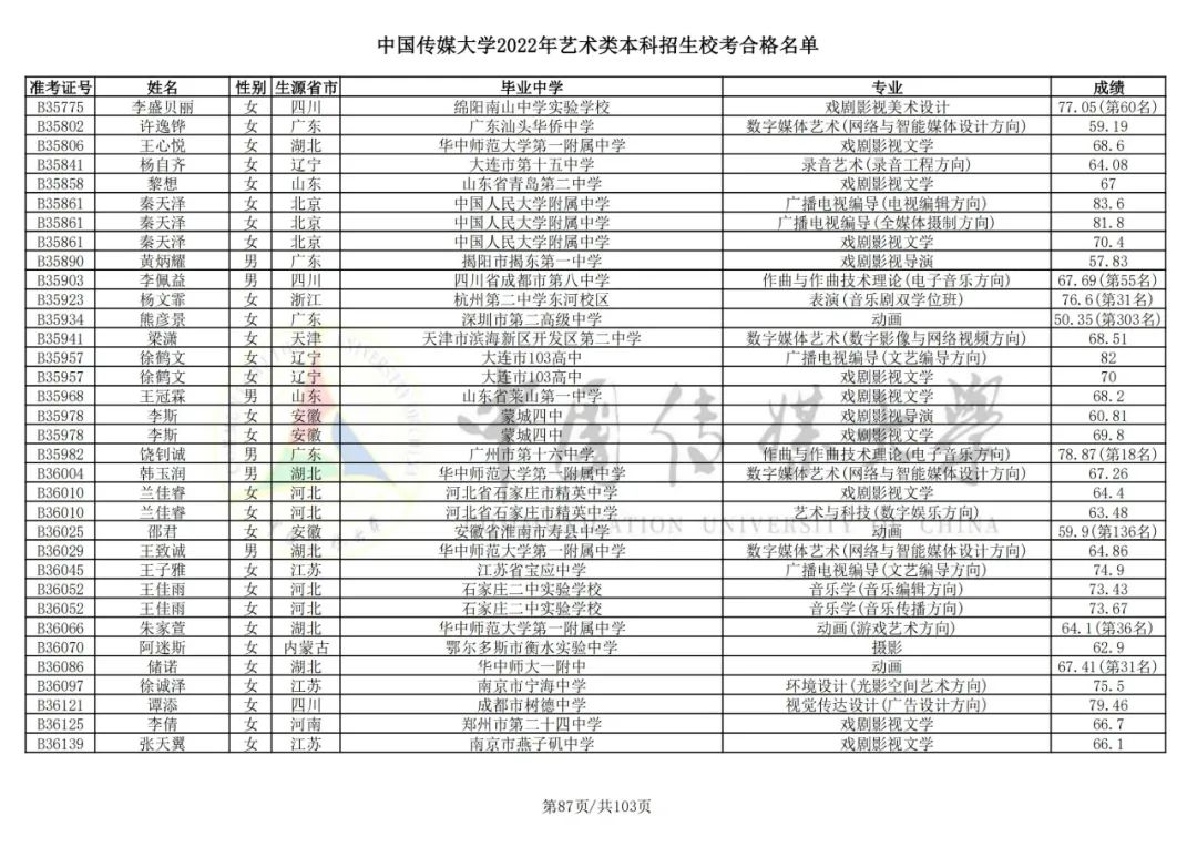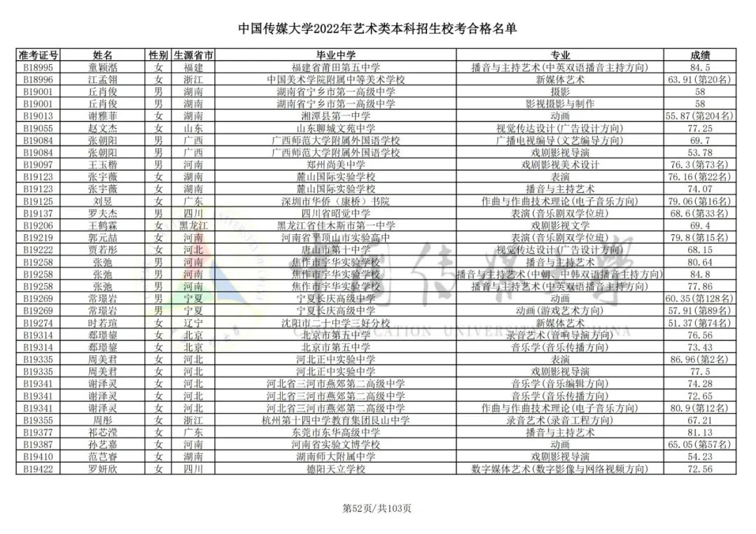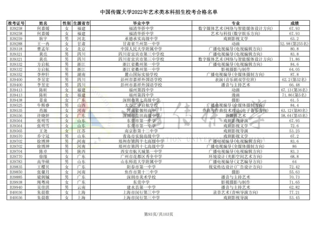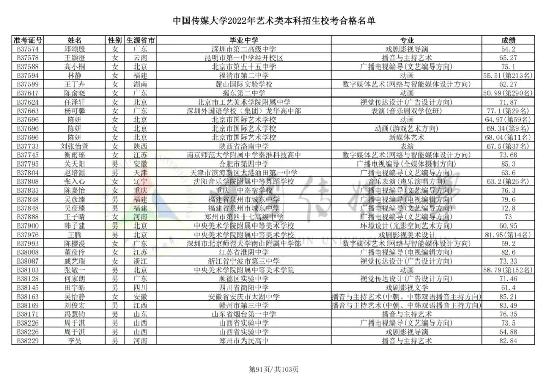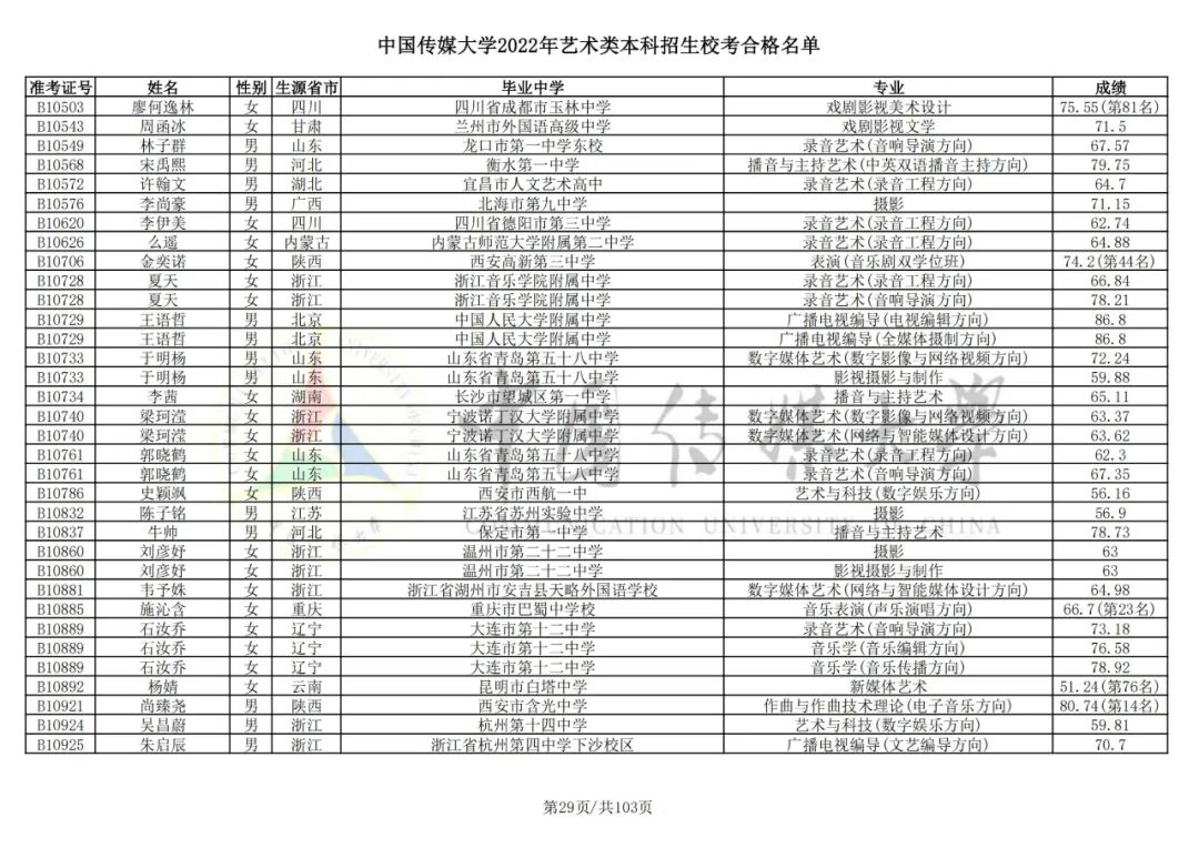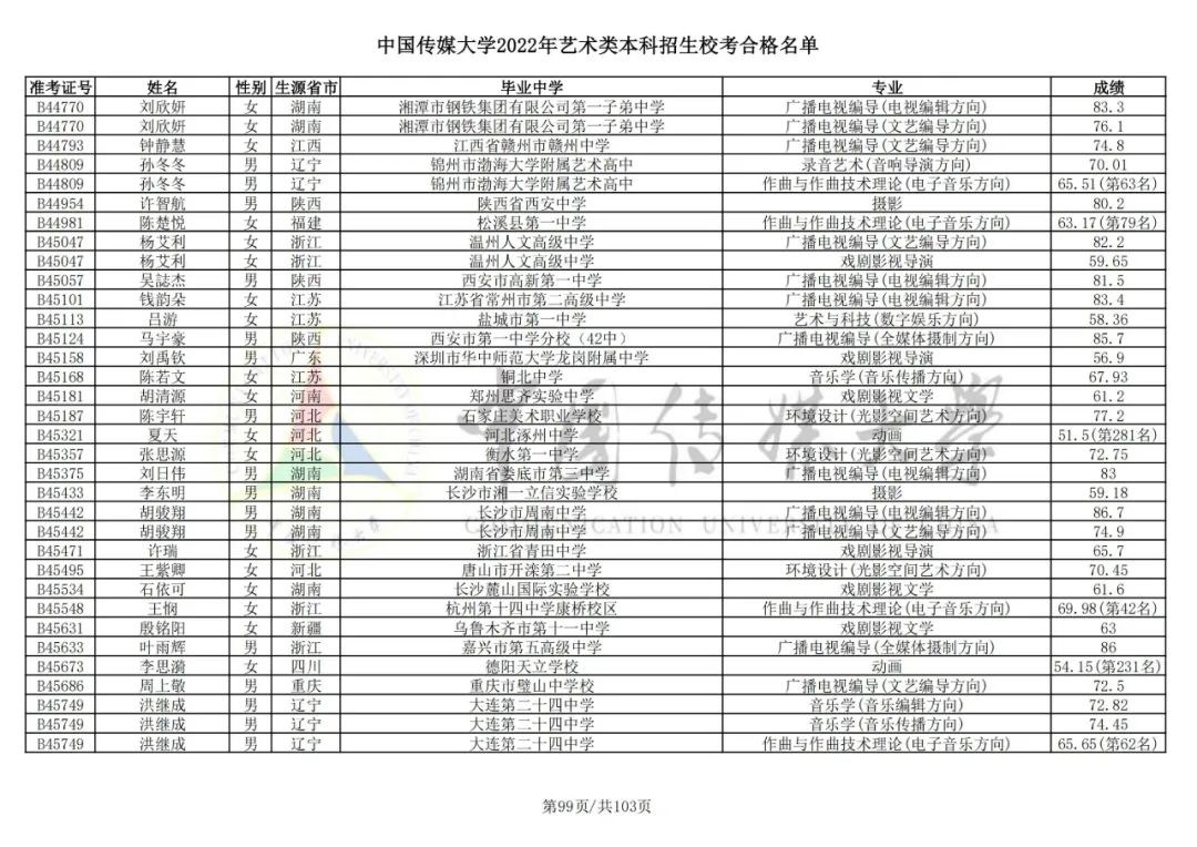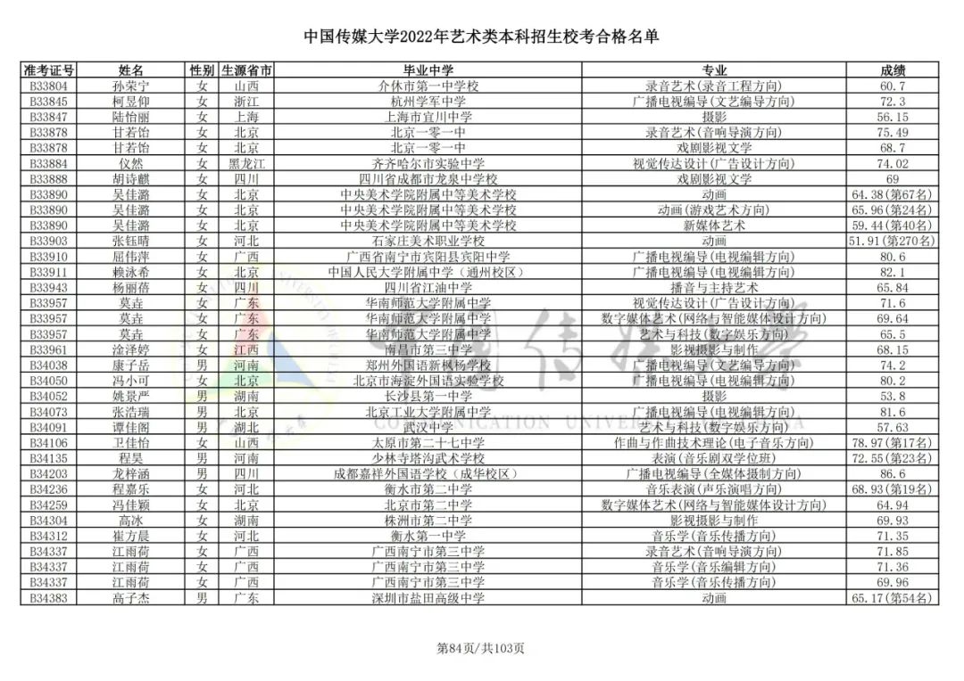 重磅!中国传媒大学2022艺术类本科招生校考合格名单公布!