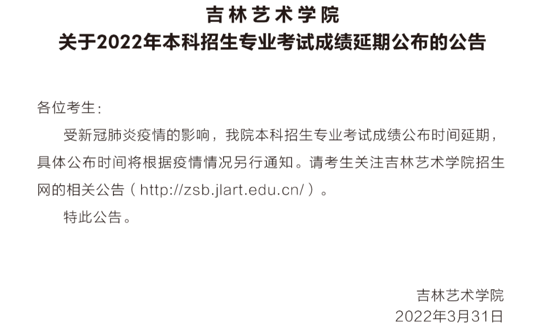 吉林艺术学院2022年艺术类校考成绩延期公布