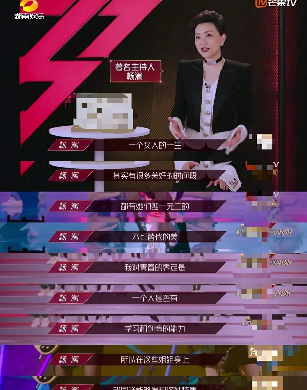 有人说杨澜的这几句话让整个节目都高级了起来,我却觉得她的格调与这个秀有点格格不入,略显尬。
