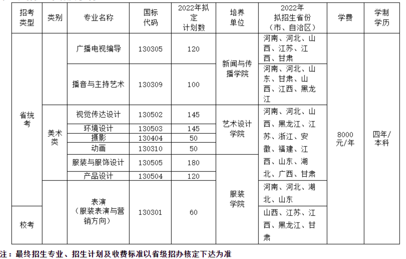 1.服装与服饰设计专业50人,视觉传达设计专业30人,计划投放北京、河北、山西、内蒙古、浙江、山东、河南、湖南、广东、四川等10个省(区、市);