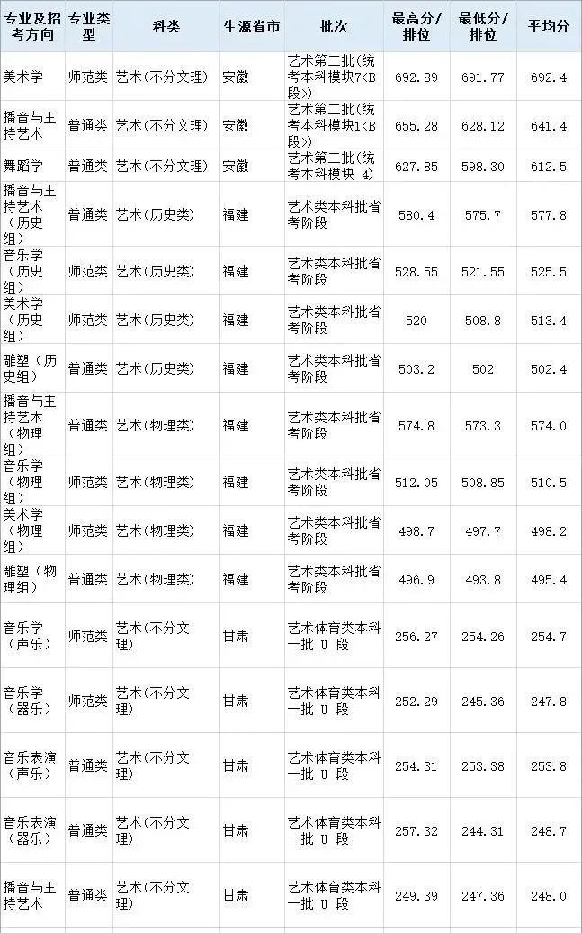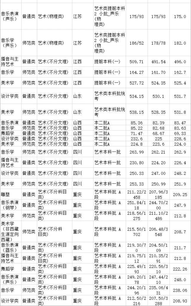 2.我校对专业和文化考试达到分数线的考生,分省份按综合分择优录取。在综合分相等时,优先录取专业成绩高者。
