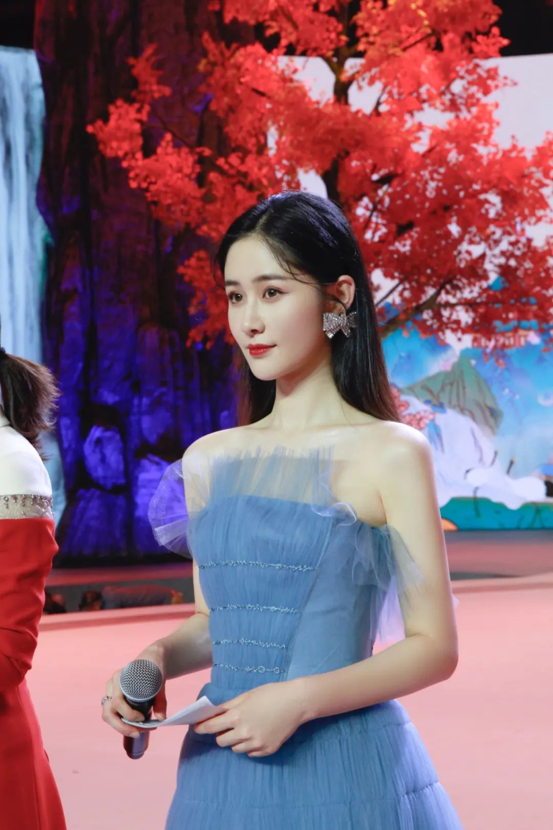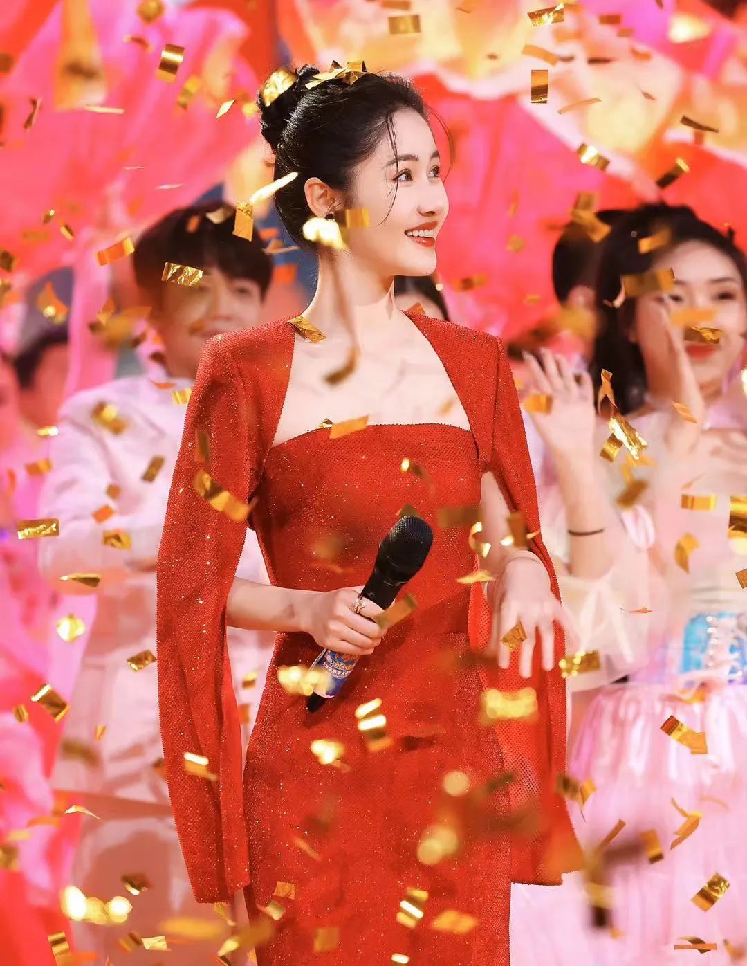 李莎旻子首次以簪花造型主持音乐盛典,主持中途突下大雨