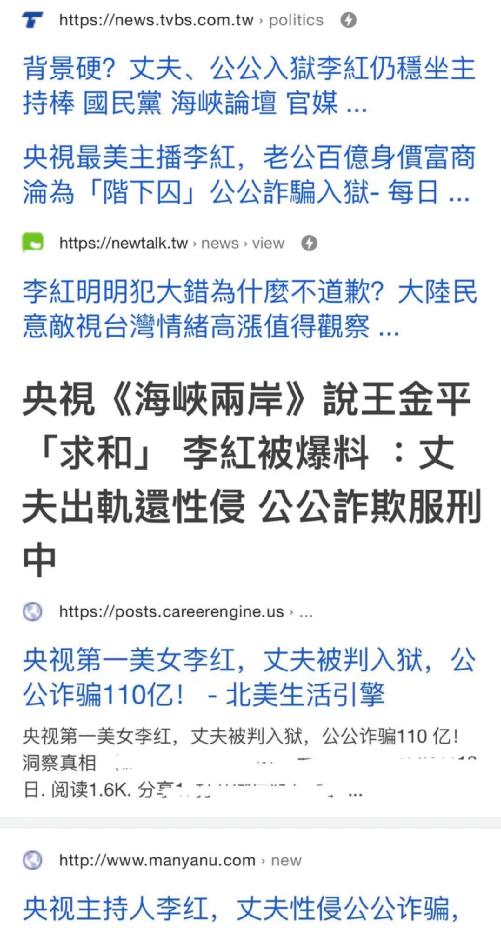 他们不仅剪辑李红外派的视频增加可信度,甚至有台湾的知名人士利用这些传闻,对她大肆羞辱。