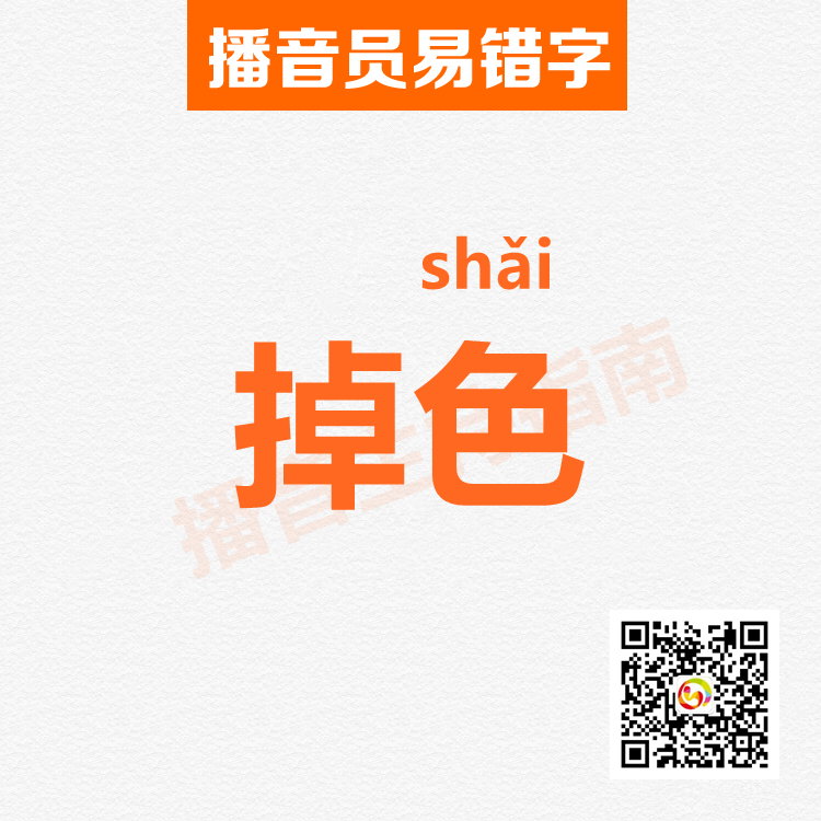 掉色(diào shǎi):颜色脱落(多指纺织品经日晒或水洗后)。
