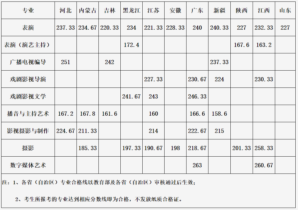 武汉传媒学院2022年艺术类专业校考拟定合格分数线