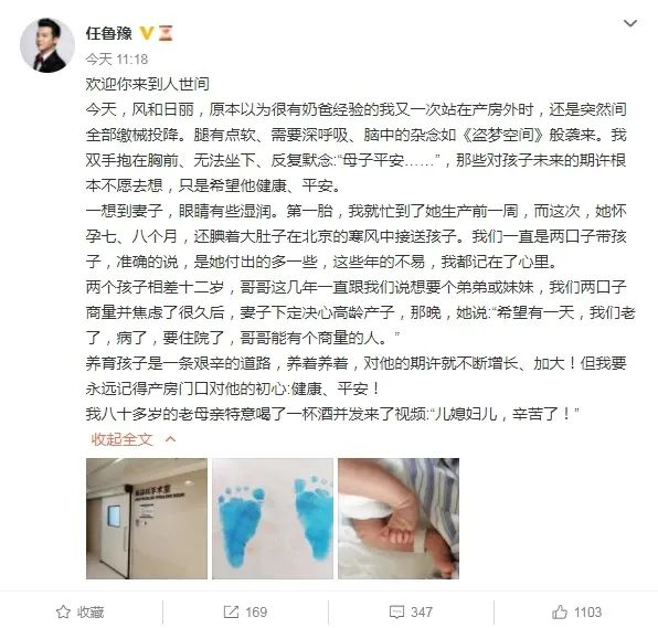 4月3日,任鲁豫在社交平台上发文,向网友公布喜讯,