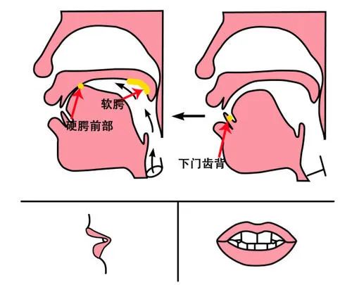 ,这样成阻部位就从舌根自然过度到舌面了。如果这样还没能完全解决发音靠后的问题,可以继续用“拆分发音”的方法来体会。