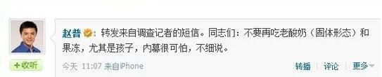 同志们:不要再吃老酸奶(固体形态)和果冻,尤其是孩子,内幕很可怕,不细说。