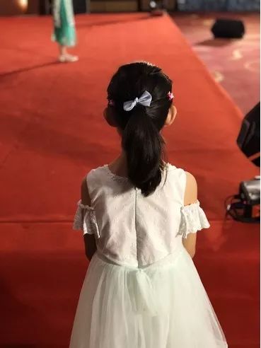 舞台上,一个即将上场表演的小姑娘