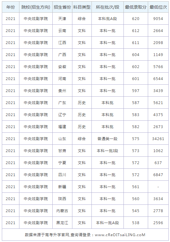 中央戏剧学院播音与主持艺术专业历年录取分数线汇总