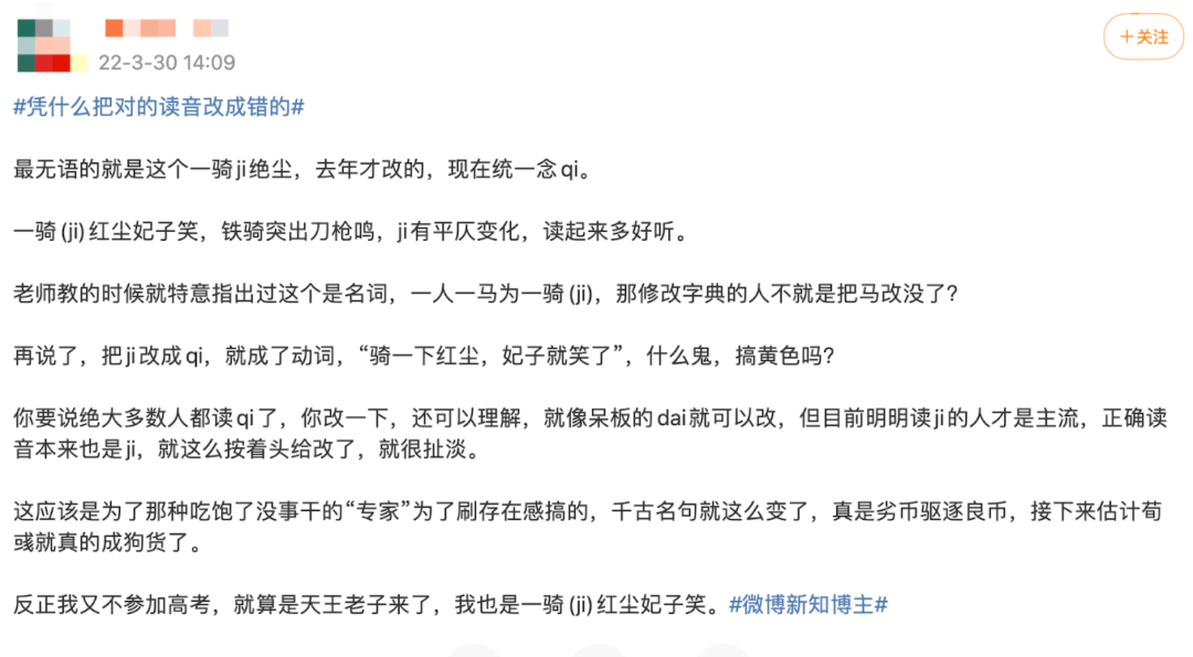 “凭什么把对的读音改成错的”。