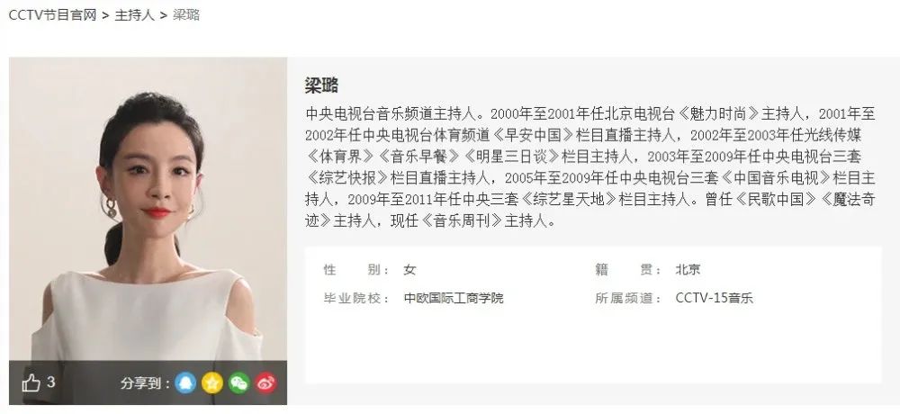 梁璐在央视网上的简介