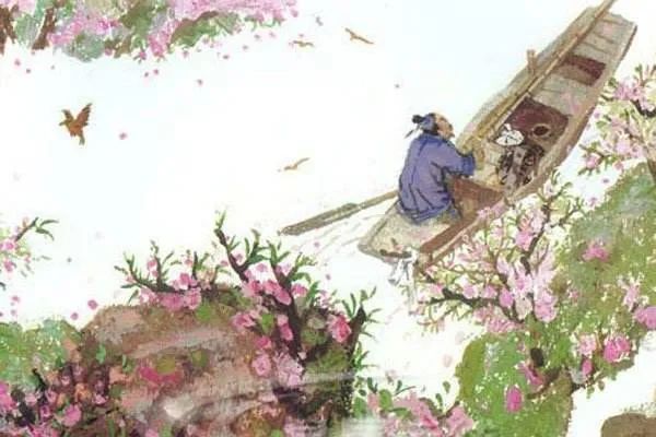 晋太元中,武陵人捕鱼为业。缘溪行,忘路之远近。忽逢桃花林,夹岸数百步,中无杂树,芳草鲜美,落英缤纷。渔人甚异之。复前行,欲穷其林。