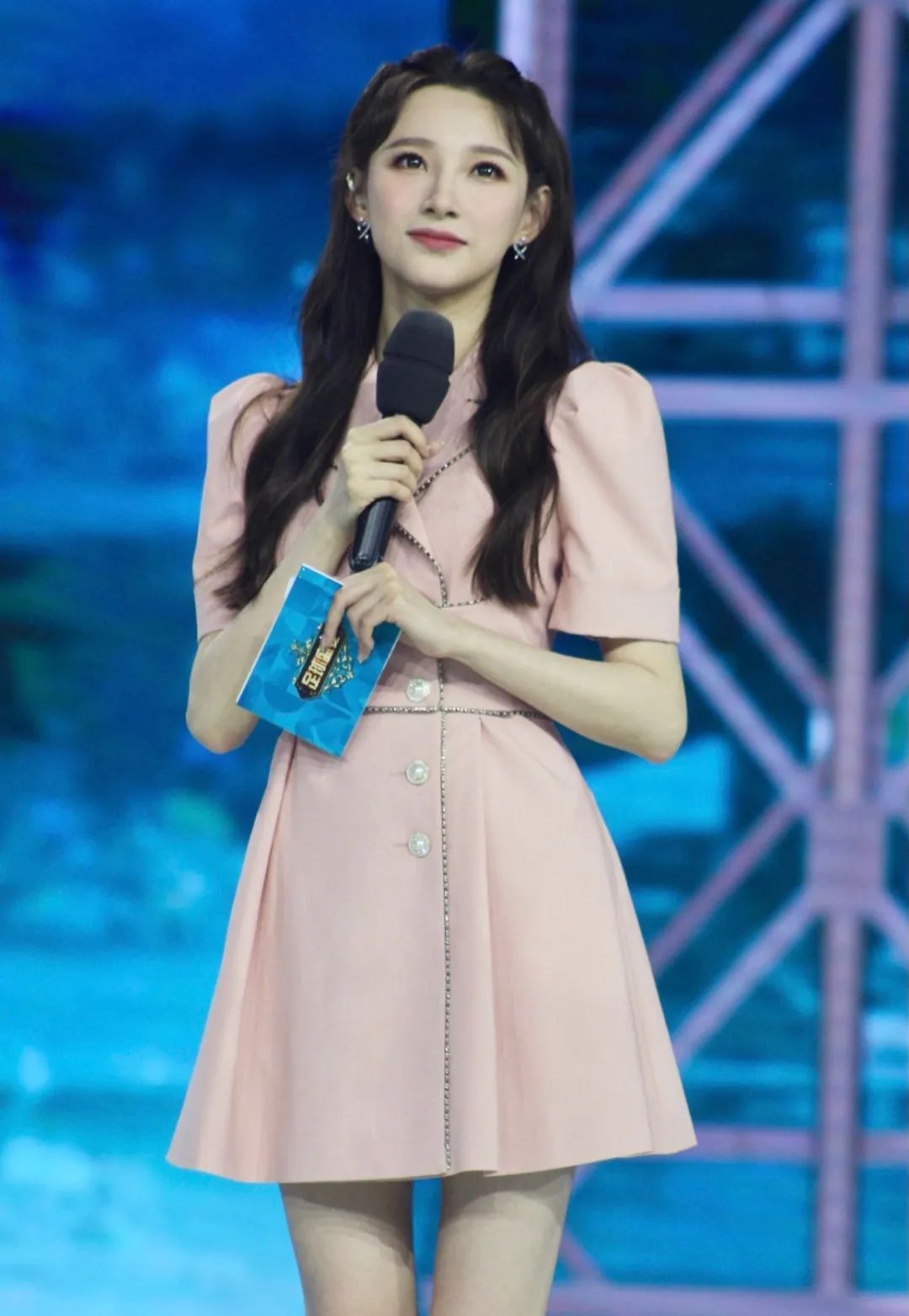 李莎旻子首次以簪花造型主持音乐盛典,主持中途突下大雨