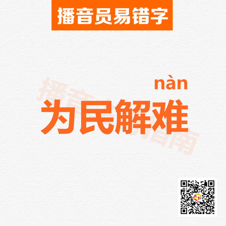 有网友问:联播里“为民解难”的“难”字读nàn,为啥呀?不应该是解决困难吗,为啥是去声?