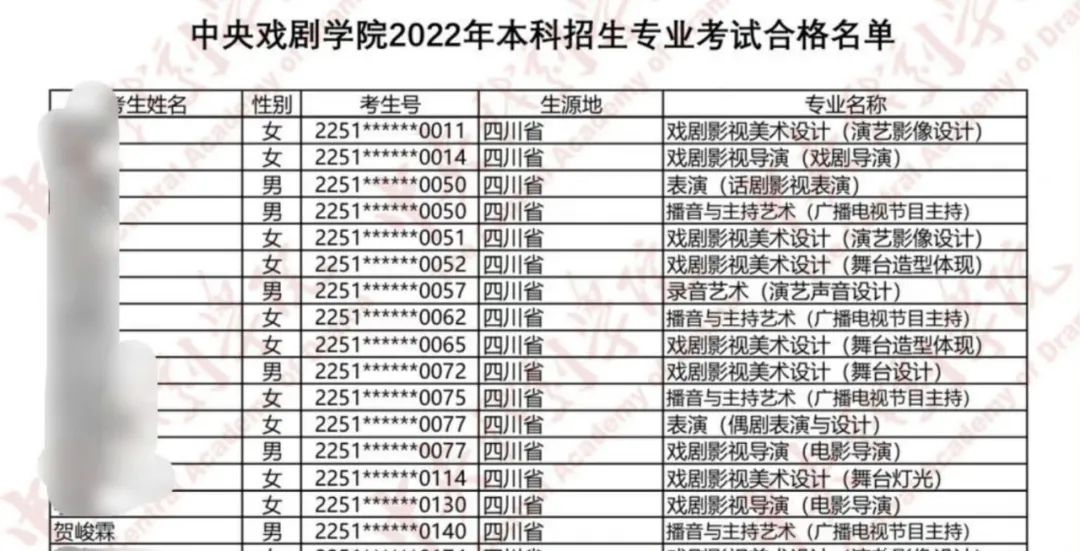 贺峻霖以A等级的成绩入选播音与主持艺术专业。