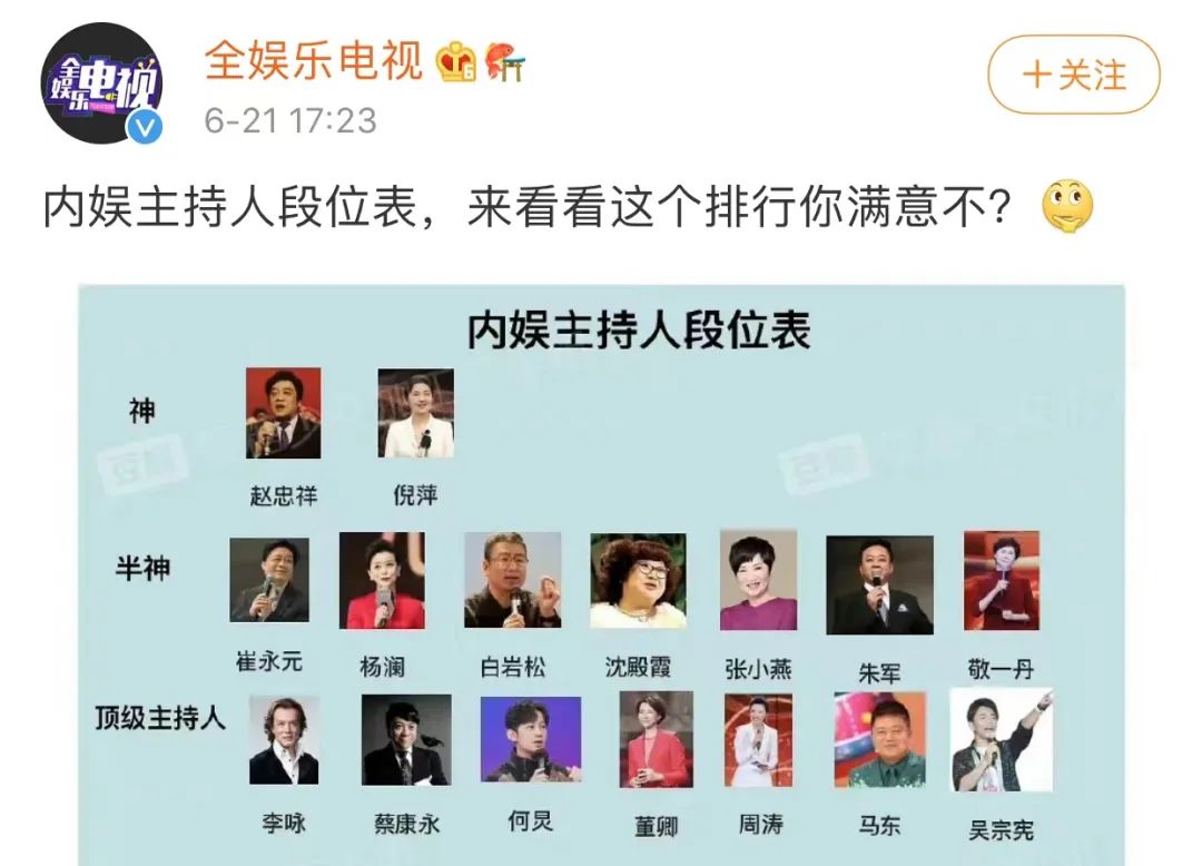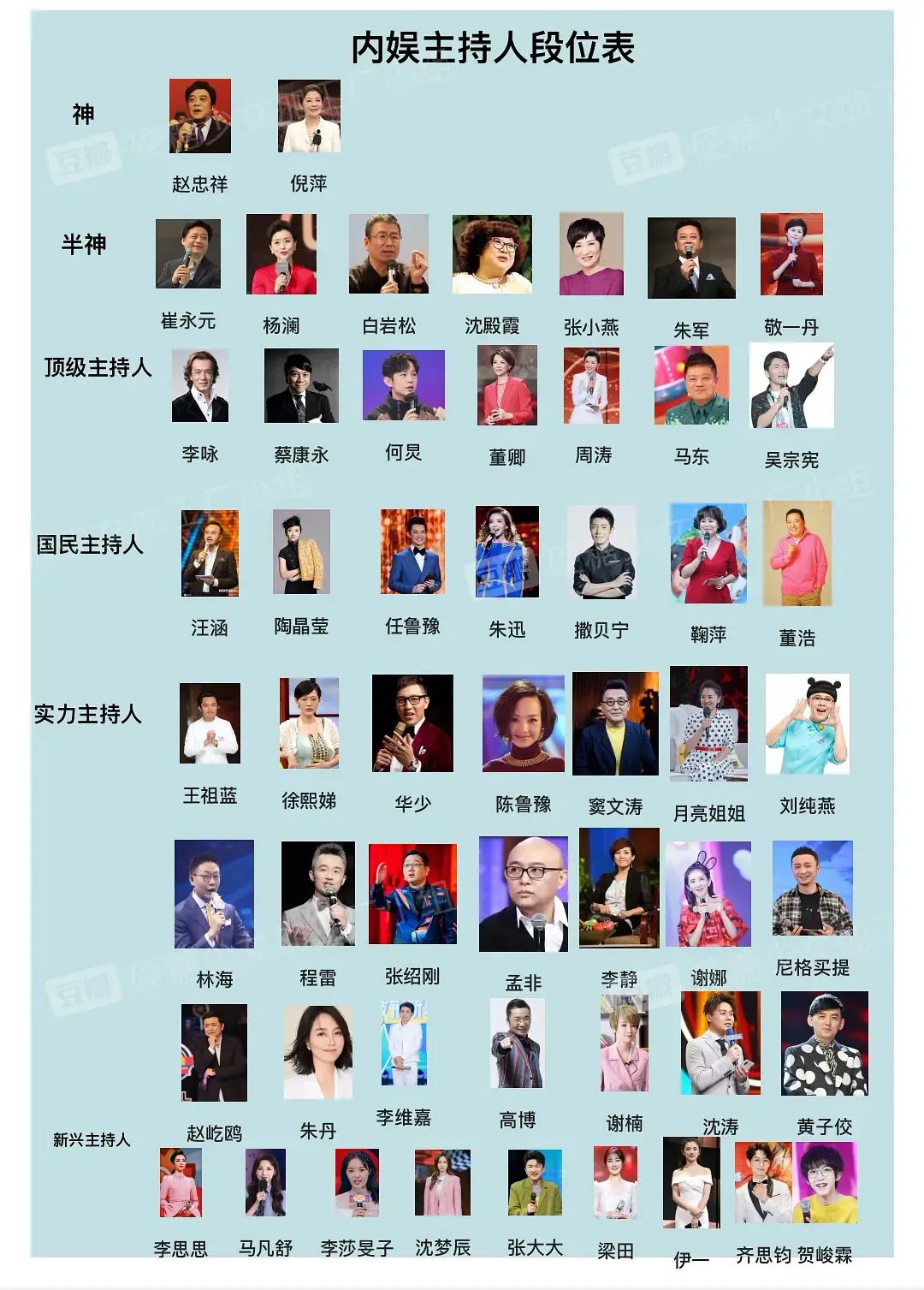 昨日,网上众多网友晒出了某网友整理的内娱主持人段位表,你看过了吗?