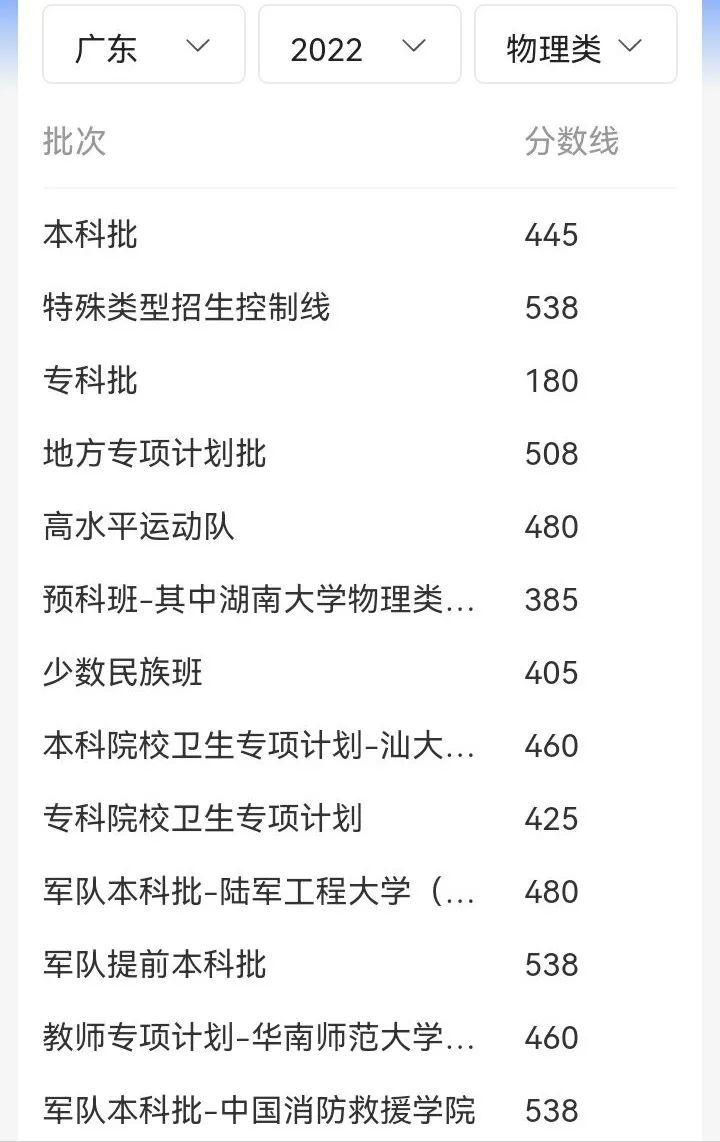 广东省作为全国高考大省,每年的高考分数偏高,试卷难度也是全国数一数二的。今年广东高考物理类分数线如下图↓