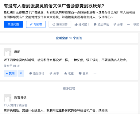 有的网友说,张泉灵的吃相太难看,一套课程反复推送,特别影响上网的体验感。