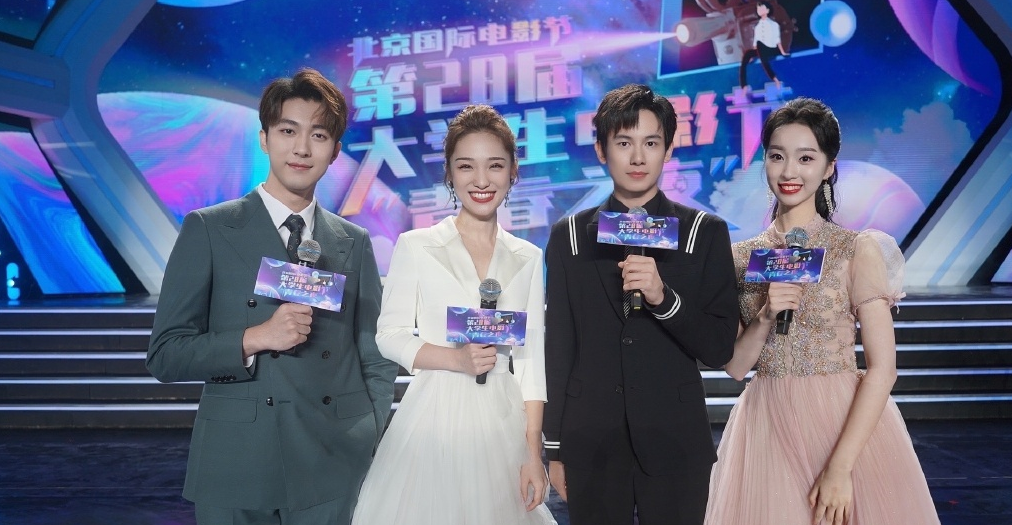 李金泽搭档蓝羽、胡先煦、沈倩主持第28届大学生电影节↓