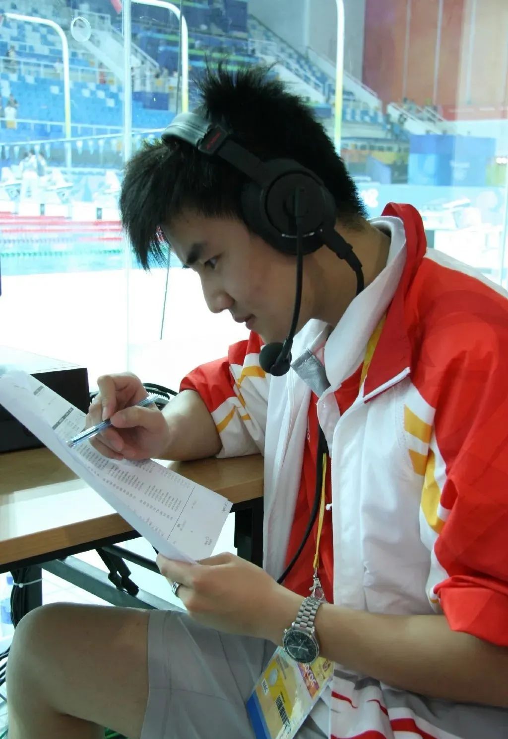 2008年奥运会期间,严於信被央视派往国家游泳中心水立方担任解说员,