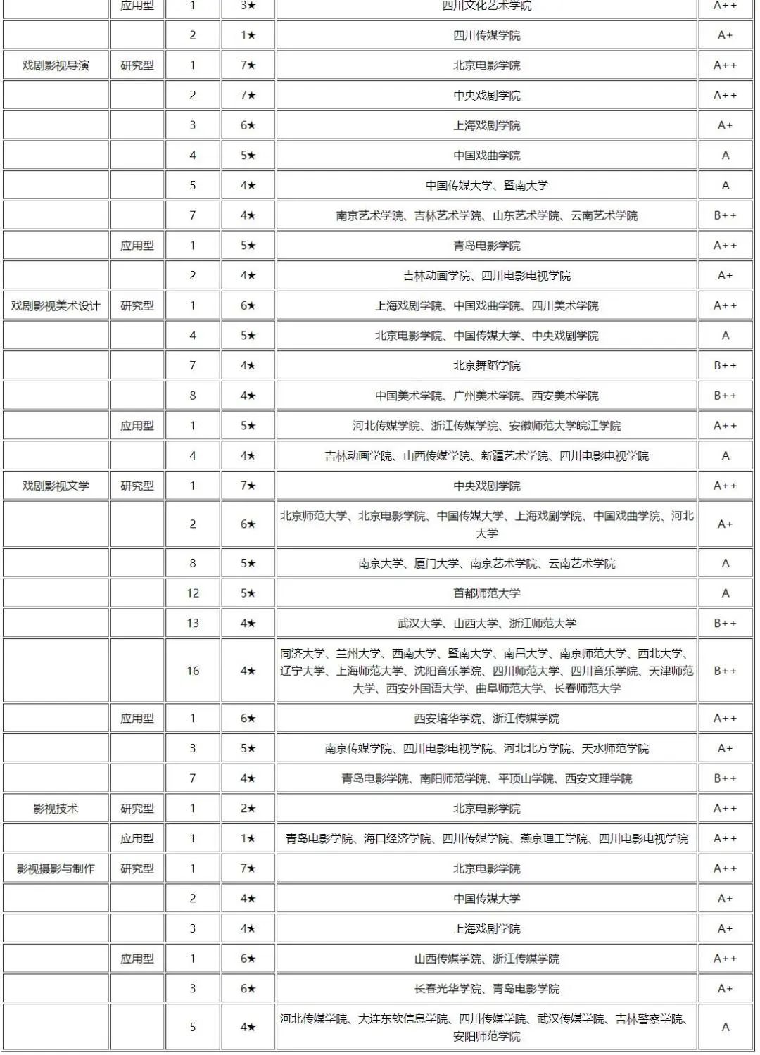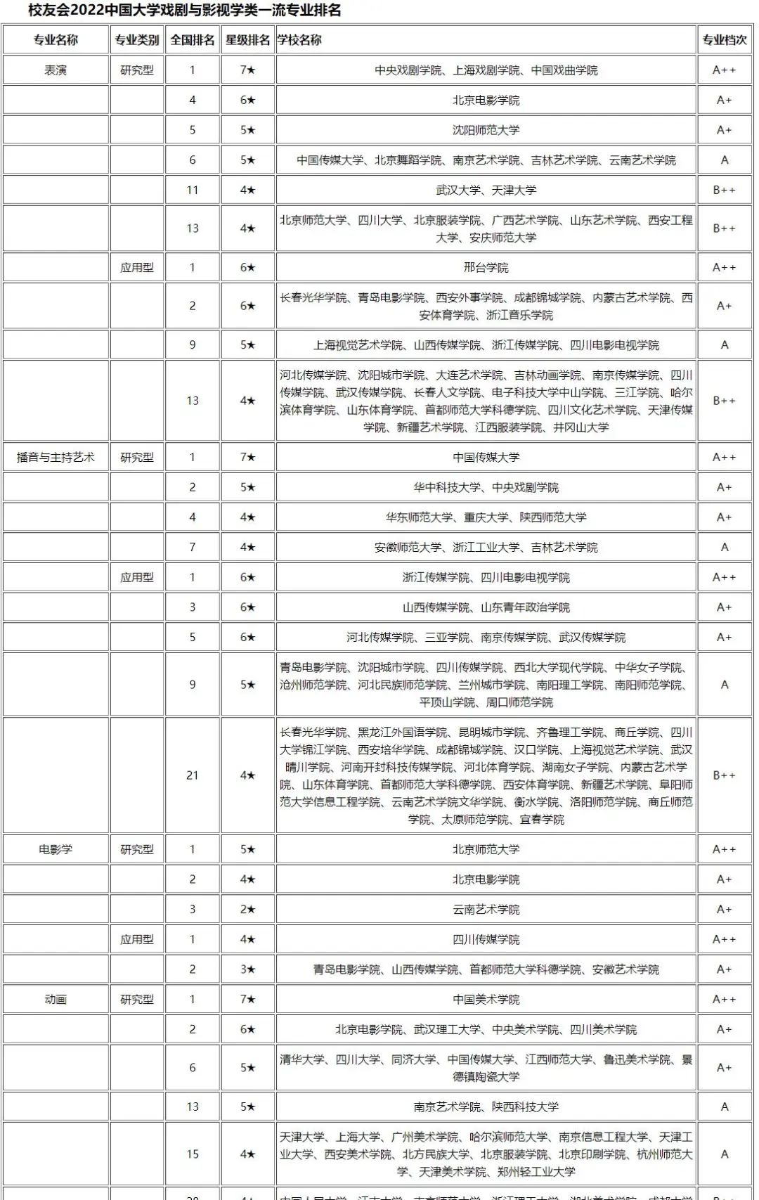 校友会2022年戏剧与影视学类一流专业院校排名