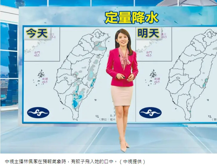 在媒体详细的报道中,林佩洁也讲述了她当时的内心历程,其实蚊子刚刚飞到她嘴巴里的时候,因为蚊子还在动,她也非常紧张,但因为天气预报直播不能中断,她也只能选择尽量不咽口水的方式,一直撑到节目录完。