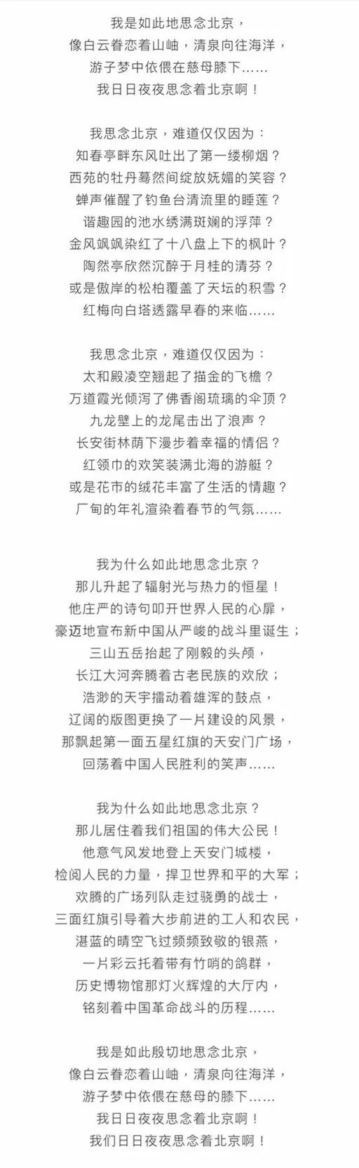 著名演员田水、任伟朗诵《我思念北京》完整视频及文稿