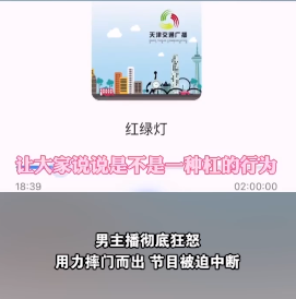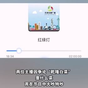 就是天津交通广播《红绿灯》节目,男主持因为讨论北京烤鸭和乾隆白菜,和女主持发生了争执。