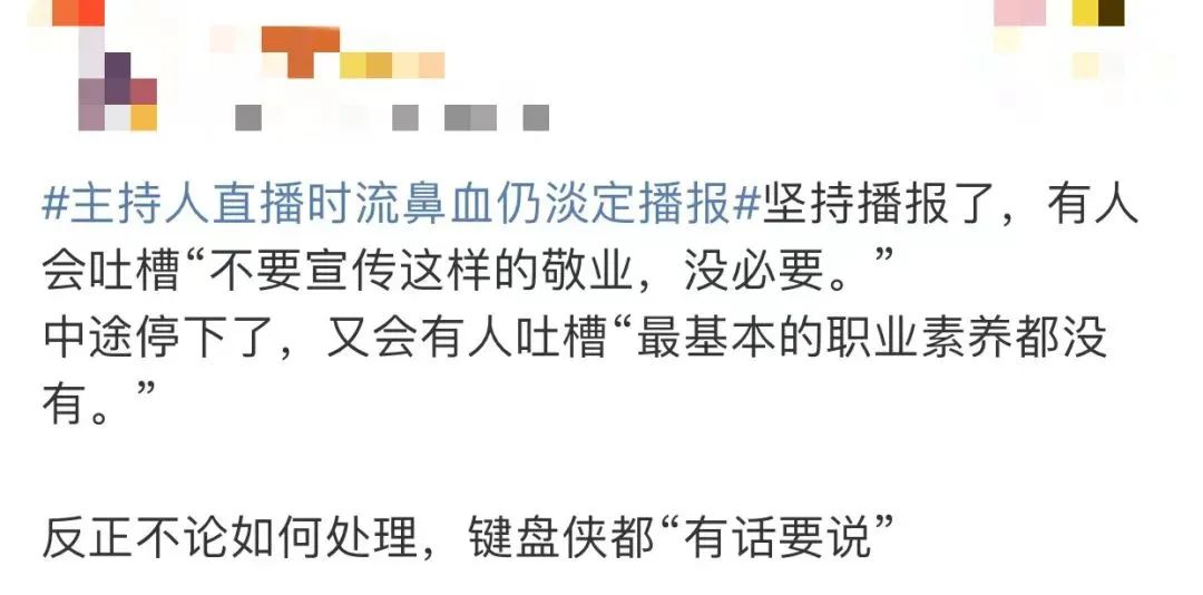视频传到网上后,关于主持人该不该擦鼻血,吵翻了。