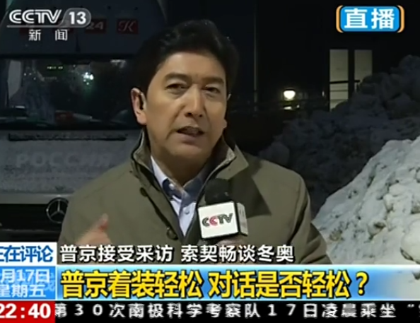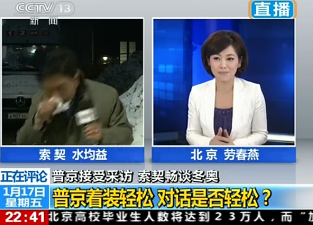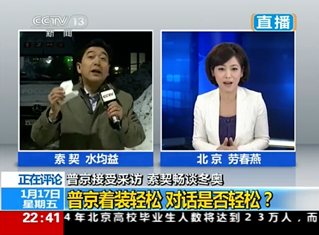 另一个事是2014年1月,央视主持水均益在索契作直播连线。