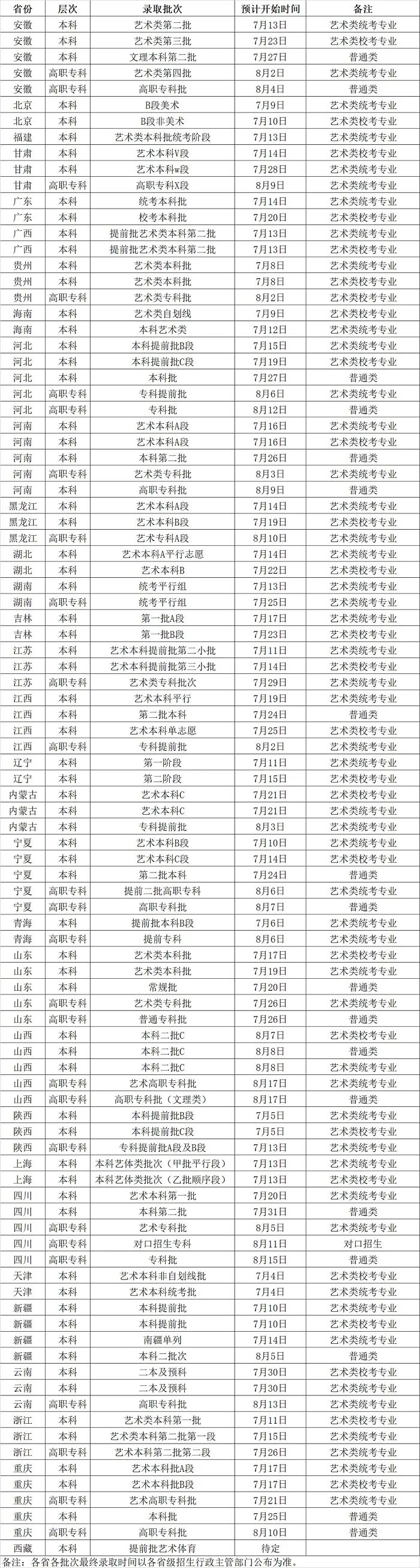 四川文化艺术学院2022年招生录取时间计划表